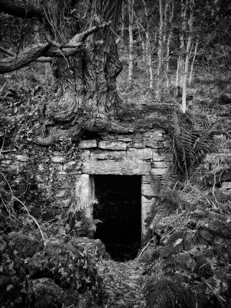 Cellars | A peculiar phenomenon in the Calder Valley is the existence of cellars that have survived their farmhouse. Of the 80 or so abandoned houses that I know of, many consist of only a few low walls or have been cleared away entirely, leaving only the trace of a footprint in a rushy pasture or a wood. But of these, quite a number have left behind their cellar, the one source of stone that it is too difficult to recycle. Some are dug into a bank if the house is backed up against a hillside, while others present a set of steps descending into the moor. Some are small and simple, but others have impressive vaulted ceilings, recessed shelves and even enormous stone tables. Such sites are ripe for eerie imaginings, but also for reflecting on the uses to which they were put to store fruits, vegetables, meat and dairy, and which justified the enormous effort of digging them out and using what seem to often be among the largest stones in a Pennine farmhouse’s construction.