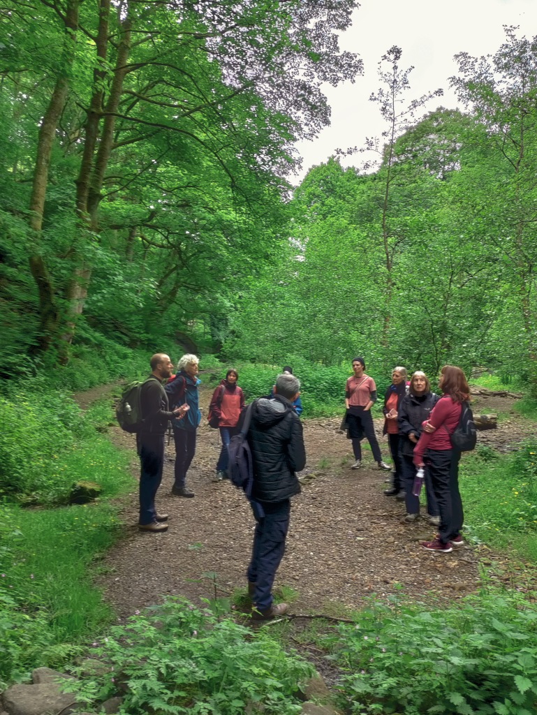 We stride off up Valley Road, exchanging where we’re from – some from Hebden, yes, but others from neighbouring towns up and down this green Pennine valley, some from other towns with similar industrial pasts over the moors that enfold us, some from Manchester – and also our relationships to the landscape we are venturing into, some newly discovering it, others whose feet know its paths well, one reacquainting themselves with it after a long absence since childhood.