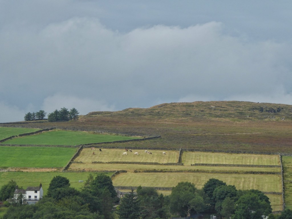 Patchwork | We celebrate the first day of the school summer holidays with a pilgrimage to May’s Shop. My son chooses jelly beans from the stunning array of traditional sweets, I a tiffin from the cabinet of tempting cakes. While I chat to May about her early years on nearby farms, and to Julie, who farms with her husband less than a mile down the valley, my son is quietly perusing the cornucopia of other delights this remarkable little shop – open every day except Christmas Day since May and her late husband Michael opened it in 1974 – has to offer. He runs over and breathlessly reports that he has found something he has been asking for since the first warm days this summer: water bombs! I have long since ceased to be surprised at the variety of stock here. Indeed, May comes over and helps him check that he has found both kinds of water bombs they carry. After stopping for a paddle at Hebble Hole on our return journey, where another boy is impressively sporting chest-high waders which he even more impressively manages to decant a good few litres of the Colden Water into when he falls into its peaty broth, we make the last pull up Pry Hill for home. In this driest July since 1935, the view is of a patchwork of the scorched, threadbare brown of the fields most recently mown for silage; the unripe-lime green of the ‘aftermath’ – the regrowth – in those fields cut a few weeks back but that have had precious little rain to bring on their recovery; and the supercharged blue-green of those harvested in late May or early June. My son spontaneously finds the tinge of these latter fields repulsively unnatural, exclaiming ‘Urgh, why is that field blue?’ at the most striking example in the distance. I suspect it is the result of a dressing of artificial fertiliser, and given its quadrupled price, one can only imagine that the calculation made by the various farmers who have applied it is that it is absolutely necessary to ensure further cuts of silage and avoiding having to buy in expensive feed before the end of winter.