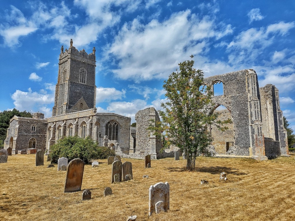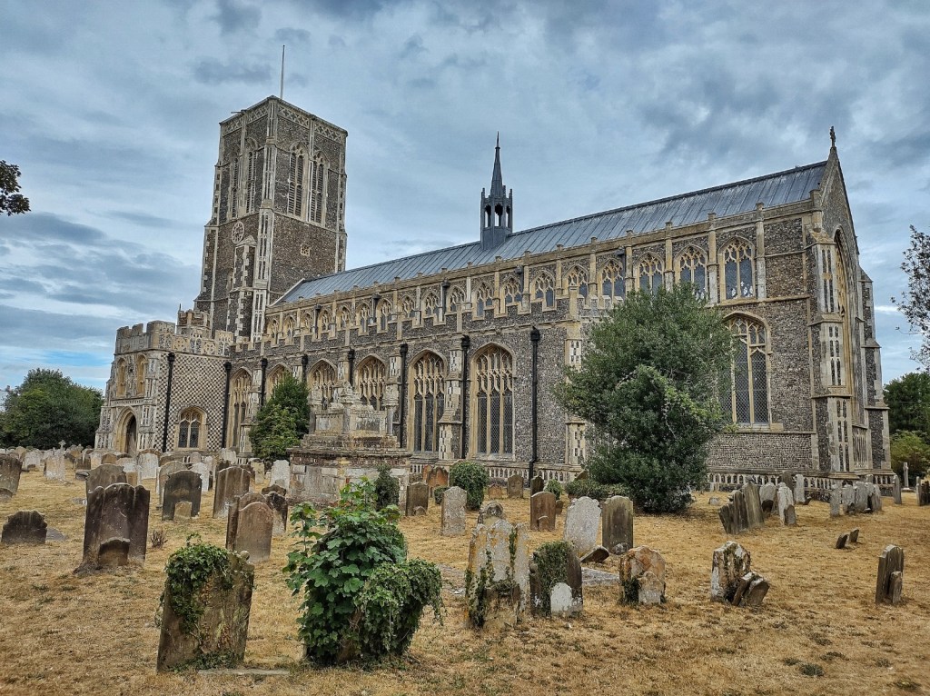 Suffolk | The sixth of our annual weeks in the wholly different landscape of the East Anglian coast. The grass of Southwold’s spacious commons are brown, but in as stark a symbol of the need for us to re-think our relationship with ‘weeds’ as I can think of, are flecked with the resilient green of deep-rooted yarrow, sorrel and ragwort. Otherwise, it’s easy to take a holiday from despair at the extremity of this summer, much of our time being spent digging on the perfect beach and splashing in the sea, with the afternoon’s sea breezes to mask the ongoing heat. Hollyhocks tower in every garden, self-seeded like our foxgloves at home, springing from any crack or cleft where they may. The swifts are here to hail us, but their exuberant screams on the first evening turn out to be not a greeting but a farewell, and the skies are silent by the time we leave. Apart, that is, from a curiously repetitive call heard on the last day, which we trace to a small speaker mounted above a terrace of swift nest boxes on the Adnam’s brewery – a technique to attract them to these new nesting opportunities when they arrive, but one which can now be turned off, if the absence of their joyous sounds can be borne. The RSPB’s Minsmere reserve is the wonder it was last year, with egrets and marsh harriers sailing over the swaying reeds, pantaloon bees and bee-wolves tunnelling in the sandy soil, and the tantalising but unfulfilled promise of adders in the dunes and bitterns in the mire. As every year, Dani Church – the fifth generation of her family to ply the River Blyth – rows us over to Walberswick for a visit to its strangely shrunken church, one of a trio of fine flint churches we see during the week, and a crossing of its baking heath hinterlands, gorse seed pods popping in the heat and rowan berries already scarlet and shining. The pier and its quirky arcade is thronged, but there is a haven of hush in the Sailor’s Reading Room, a refuge since 1864 for fishermen when not at sea, open now for all to come and read the papers spread on the ancient tables, today beaming with England’s superlative win last night in the Women’s Euro final. Somehow, the sounds of the crowds passing on the front just outside its always-open doors, the merry squeals from the beach and the ever-present rush and suck of the waves only deepens the peace within its hallowed walls, its changeless years measured by the tick and chime of the clock above the fireplace while the fissured faces of long-gone mariners stare benignly out from fading photographs.