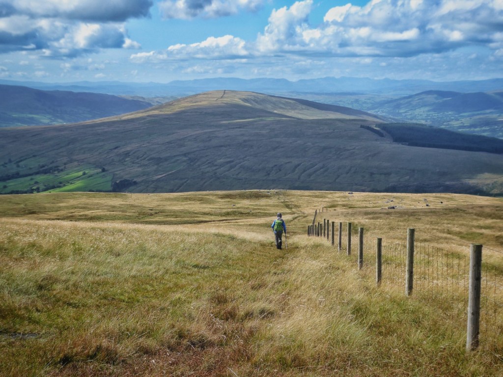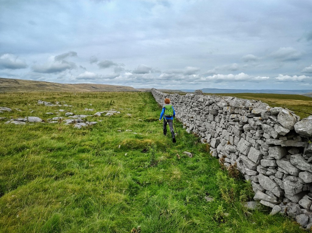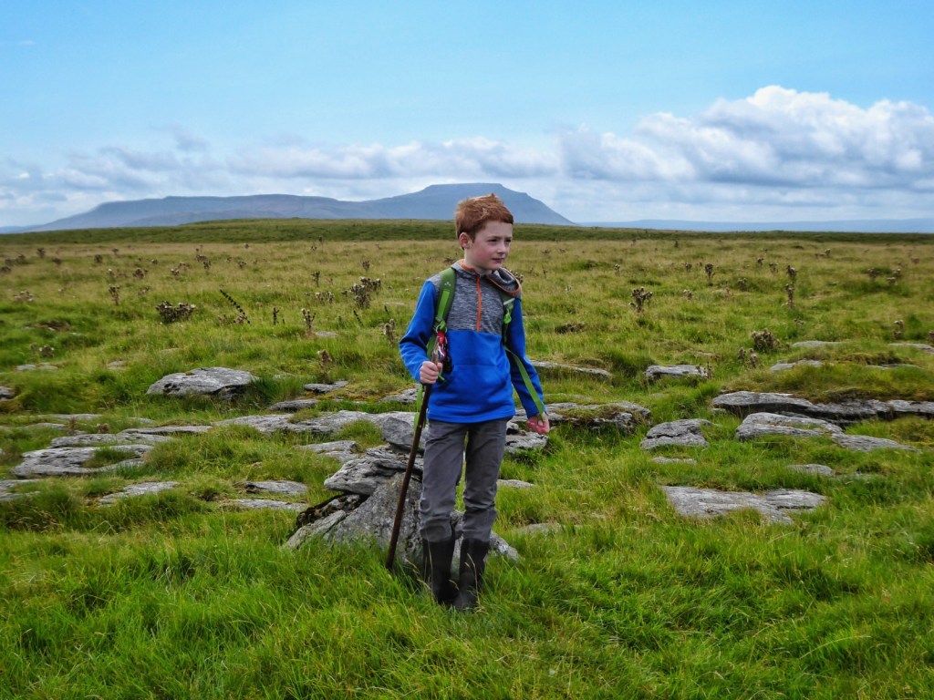 Meadow pipts and the white rumps of wheatears scatter before us as we stride back along the green lane to the head of Arten Gill. Our last ascent of the day, up and over Great Knoutberry Hill, opens out the view beyond the whaleback of Rise Hill and the crumpled mass of the Howgills to the hazed but unmistakable horizon of the Lake District, the Langdale and Bowfell skyline familiar from our traversals earlier in the year. We bounce down the boggy slopes, eating sweets, playing word games, spotting small white butterflies on the bright yellow hawkbits, and as always on long days on the hill with my son, with miles behind us and a green valley ahead, I don’t think I shall ever be happier.