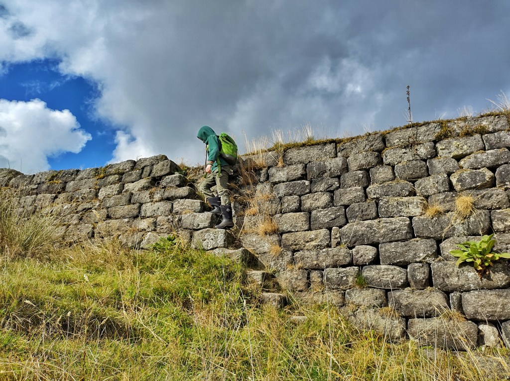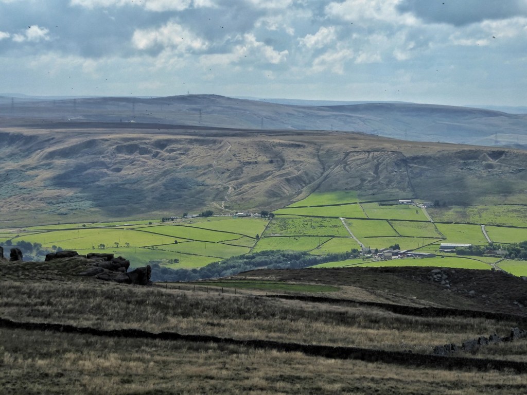 But now we must thrust our way through this knotted, jarring tangle of moorland to reach our destination for today, the Bride Stones. The point of coming this way, of all ways, was to continue our efforts to trace our local watercourses to their source, having already been on expeditions to those of the River Calder and the Colden Water. But frankly, we have both by now lost interest in precisely where the stream of Hippins Clough/Jumble Hole Clough emerges from the mire to our left; we both just want to reach the road. It is a relief to cross the last barbed wire hurdle to the tarmac.