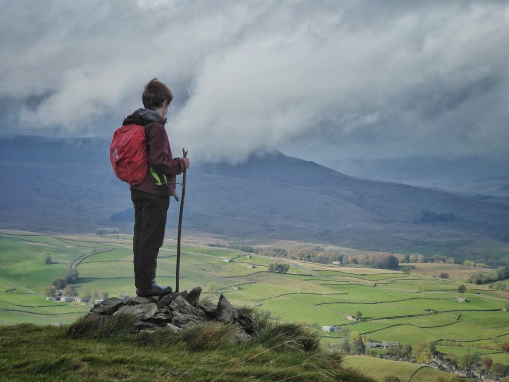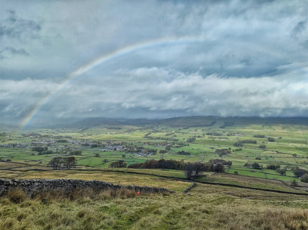 This secular incantation, carried on the wind from over the tannoy, accompanies us on our walks. Sun and shadow chase each other over the familiar folds of the fells, their limestone clints now shining, now as dark as the gritstone of home. We lean into the wind high on Abbotside Common one day, and on another march up the Roman Road over Wether Fell and into the cloud, listening for legionaries in the mists. Laying beside the fossil-encrusted stones of Yorburgh’s summit cairn, a sodden raptor pellet glistens with tiny jawbones. A little owl scowls over its shoulder from a barn roof, plump black sloes shine with the night’s rain, already-leaf-bare ash trees crystallise out of the dry stone walls, seemingly made of the same carbonate shells from an ancient coral sea. A rook and a blackbird convivially perch on the weather vane atop the school’s bell tower.
