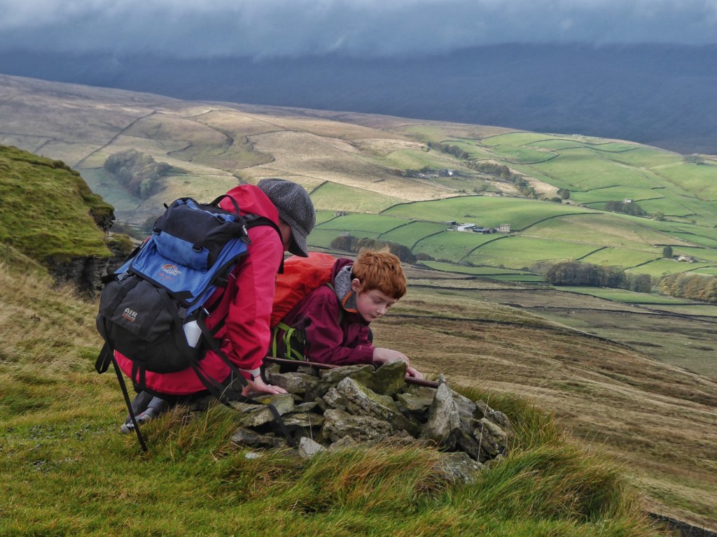 A small flock of sheep is being gathered on the quad bike along the ramparts of Edge End Moor, the farmer’s calls reverberating off the decaying walls of Thorps, where we are having a snack. He has the help of one of the farm dogs. Until, that is, it comes to inspect us, peering with panda eyes around the trunk of the magnificent sycamore that has guarded the ruined farmhouse for all of its 140 empty years.
