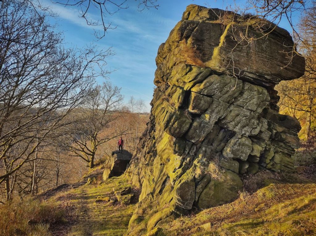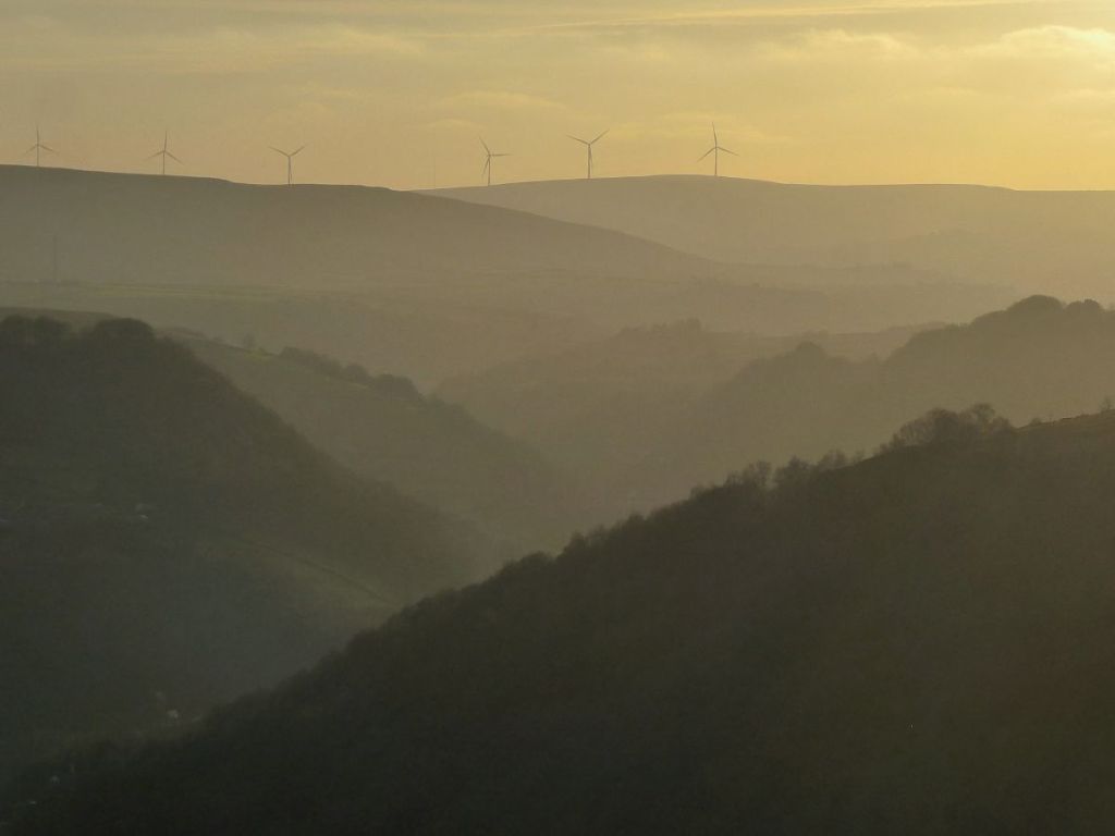 Back in the final rays of light on the west side of the village, a dog walker winds among willows on the edge of the crags, one man sits on a bench with a pair of binoculars, and another leans over the fence above Hell Hole, as he does most evenings, watching the sun sink over the headwaters of the valley where he grew up on an old farm on the shoulder of the moor. Broom is scattered on the Whins, a patch of heath recovering from a fire a few years ago. It is from here that the title card of the BBC’s Happy Valley opening credits is filmed, looking down at King Street and then panning up to the title floating in a blue sky above a skyline of roiling clouds. This evening, the few clouds are calm and crimson, though not as spectacularly so as the evening before, hours before the series’ finale. It is a show whose use of the local landscape has always been brilliant. Generally, it is to add to its grittiness, but this time it allowed the vile Tommy Lee Royce a transcendent moment, basking in the freedom of the open moors – and appropriately enough, given his escape from custody, he was overlooking the fields of the vanished farming and quarrying community of Fly, high above Luddenden.
