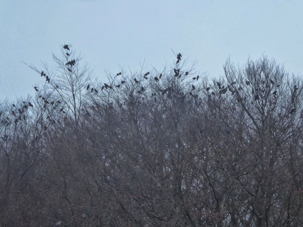 Skeins of pink-footed geese trumpet over, their arrows made up of anything between 30 and 300 bugling birds. In six weeks, their regular passages over the valley’s airspace to find feeding in flatter fields of winter crops will end, as they migrate back to their summer breeding grounds in Greenland and Iceland. And this is not the only spectacle with numbered days; the evening uproar of the jackdaws settling in their winter roost in Common Bank Wood will soon quieten as they disperse to their nesting sites. Already they are investigating chimneys and tugging at the moss on the green. But for now the clamour continues above Mulcture Hall, as over the course of a couple of hours they return in clattering convoys from the day’s foraging. In a dank and early dusk they settle with a minimum of fuss, only rising once in a swirling, howling storm, but otherwise accepting the latecomers into the throng with relative equanimity. But days later, in a clear and crisp twilight, the jostling for position becomes more intense, and the roost erupts time after time. The din of this tumult carries easily across the valley to Cruttonstall, where Lleyn and Derbyshire Gritstone sheep gather about the ruin, silent since not long after George and Elizabeth Halstead closed the door in the 1880s after 40 years of farming there. Its fields are ready to grow and bring to an end the winter labour of stocking the bale feeder beside the barn with last summer’s hay. Tawny owls, male and female, call to each other down in the woods, and the very last of the jackdaws, as black against the west as the valley’s shadows, thread their way home between Venus and the waxing crescent moon.