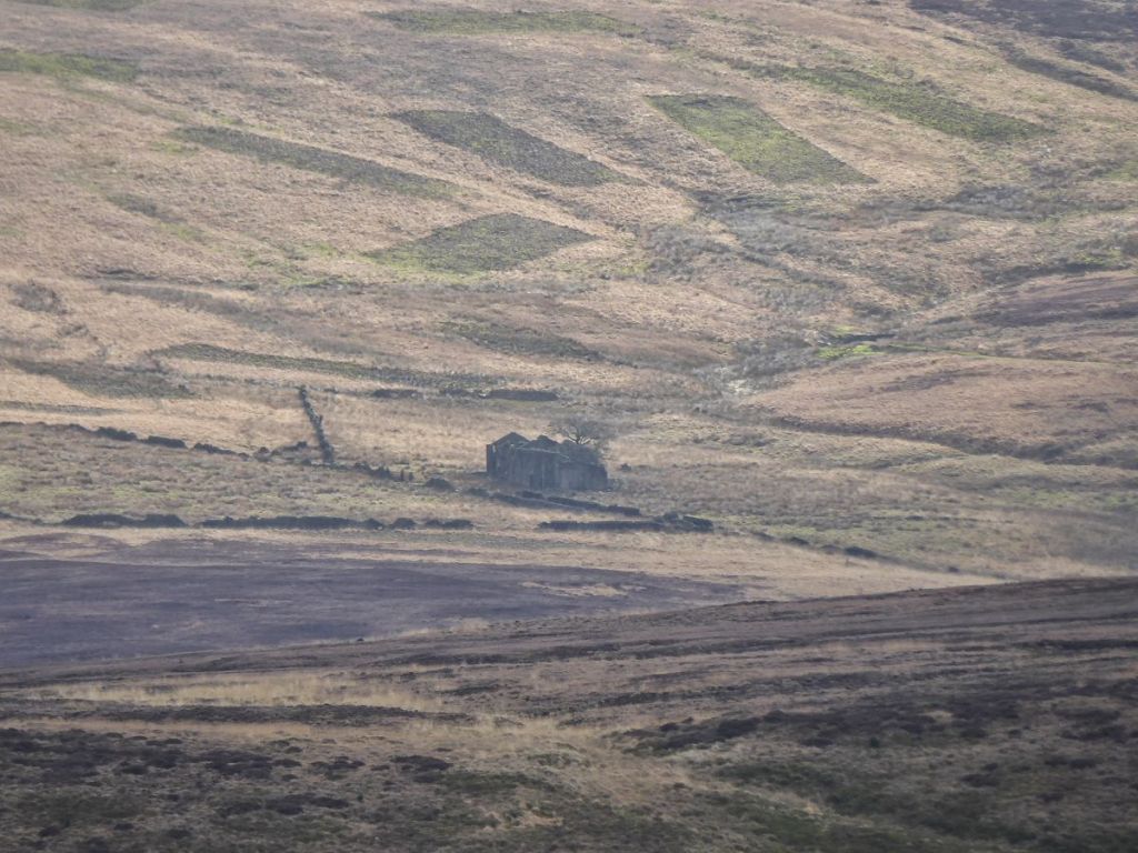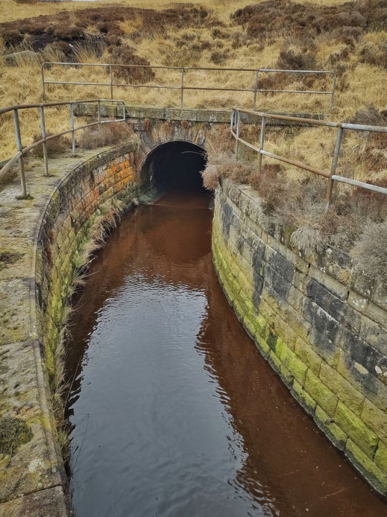 Two days later, Widdop Moor is cowering under stinging winds and sullen skies. What was it like for the navvies who worked and lived here for seven years during the reservoir’s construction in the 1870s? They flooded the fields of eight farms that once made for a community, isolated in its bower in the hills, a good place to live, but also a good two-square-mile gathering ground for Halifax’s drinking water. But Halifax needed more than this, so away from the main task of building the dam, a seeming sideshow took place – the digging of a 1200-yard tunnel to divert the downstream waters from Greave Clough into the reservoir – which actually increased its catchment by a further three square miles of moorland. With the help of Lidar maps, together with the observable angles at its one overground appearance at Pig Hole Dike, where the spoil from the conduit’s creation was deposited in a long tail, it is possible to trace its subterranean route through the foxglove-studded bracken beds. This extension of the catchment meant two more farms were impacted by the prohibition on keeping cattle on drinking water catchments; today, the site of Lower Good Greave is marked by a pair of sycamores, and the low ruins of Upper Good Greave are submerged further every year back into the earth.