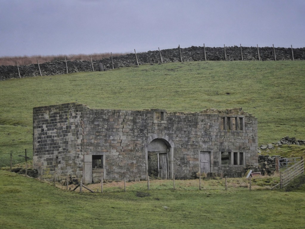 The head of Crimsworth Dean, cradled on all sides by the moor, is utterly quiet. No one is venturing out in the bone-cold morning under the grey skies. But this silence and stillness has not always prevailed. One hundred and seventy years ago, 22 farms occupied the 600 or so acres of enclosed land upstream of Lumb Falls at the head of this tributary valley. But then this community started quietening as the farms were abandoned, a casualty of the collapse of domestic handloom weaving that supplemented the meagre income from the sale of bull calves and butter. Today, only three working farms remain, with five more now dwellings only, while fourteen farms have gone – six vanished more or less entirely, eight lingering on as ruined reminders of a thriving past. It is still a beautiful place, with good people tending their ancestors’ acres, but a hush such as this has not been heard for long centuries.