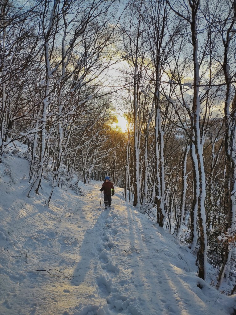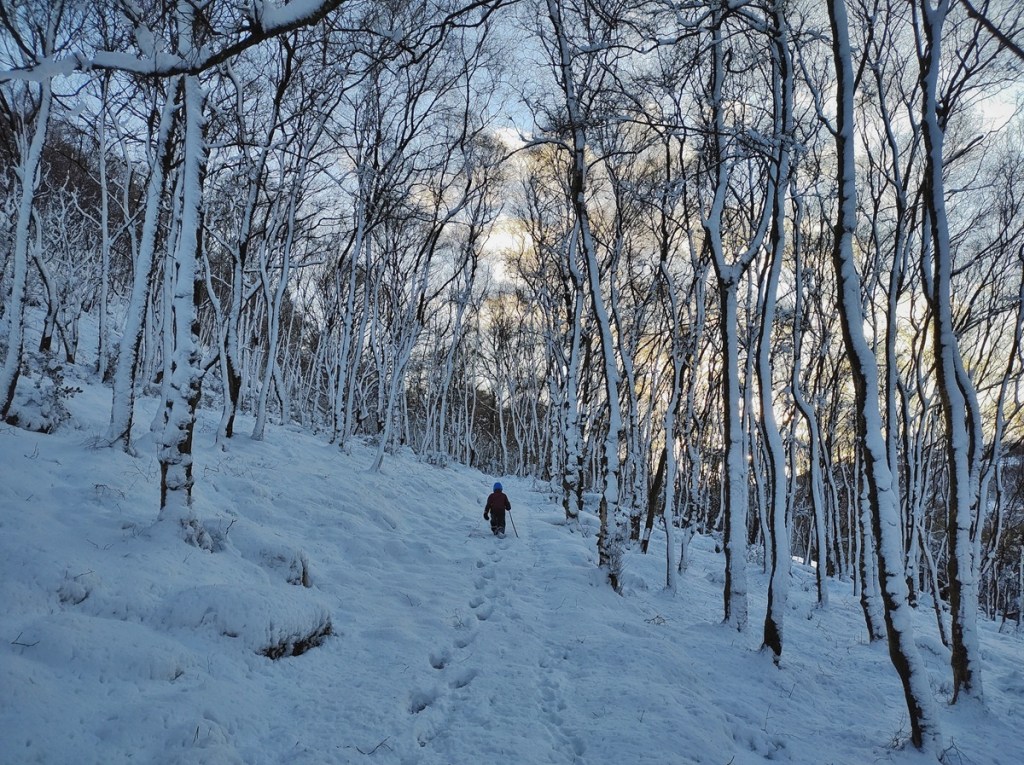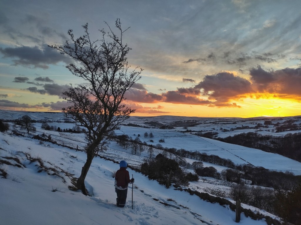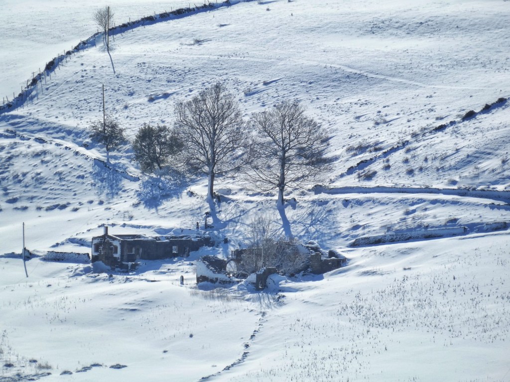 By dusk, the village green is substantially living up to its name and the south-facing valley side woods have been thoroughly defrosted, but opposite, the Callis Wood birches retain the smothering on their north-east-facing side, and the old zig-zagging avenue of Foster’s Rake is still deep in trackless snow. The drifts at Cruttonstall are the deepest since 2010’s Big Freeze, and as soon as the sun slips behind the Bride Stones the temperature begins its spectacular 10 degree plunge.