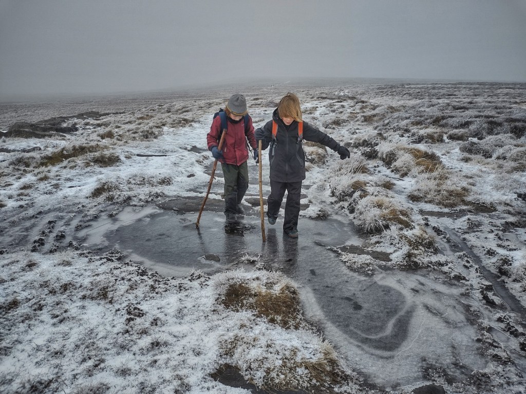 The snow returns yet again the following morning. The bogs and puddles on Flaight Hill, where the farmers of Crimsworth Dean and Pecket Well once cut peat for their fires, are frozen and rimed. But a skylark is singing of drowsy summer days up in the cloud that bears down on the moorland plateau, and curlews, lapwings and golden plover, too, are far from convinced that this amounts to a slamming shut of spring’s door. It is no more than a brief pause on the threshold, they sing. And they are not wrong; a couple of hours later, the morning’s snow has vanished, leaving only the remnants of last week’s drifts in the seven crumpled and canyoned acres of Delph End Quarry.