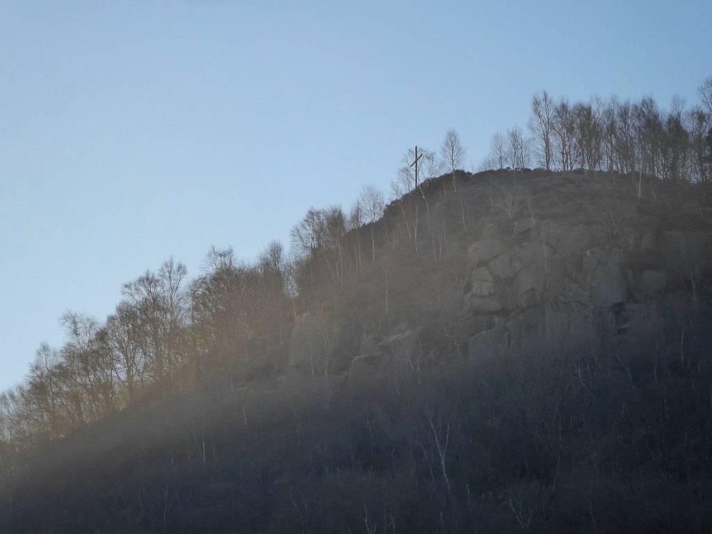 In a cold, grey afternoon, a single swallow silently hawks above the willow flowers. Having arrived two or three weeks earlier than most of its tribe, it has no companions to call to, and insects must be thin in the raw air. But perhaps it was not such a misjudgement after all, for two days later the sun, if not the air, is warm. From the terraced garden of the community-owned, co-operative Fox and Goose pub comes the peal of hammer on steel, as the High Hirst Woodmeadow scythers gather to peen their blades in readiness for their second mowing season. They join thousands of others on International Peening Day in this annual ritual to reshape the blade’s bevel after last year’s labour of cutting and constant honing has increased its angle until it is no longer as efficient at slicing through grass. The chime of their work fills the valley and rises to the rocks of Horsehold Scout, where a congregation of Hebden Royd Churches Together is engaged in its own annual ceremony, for it is Palm Sunday, when a 15-foot cross is raised on the rocky promontory, remaining there until Ascension Day. It catches the first dawn rays the following morning, while the north-facing crags on which it is perched will remain shadowed for hours yet. The green catkins that festoon the poplars at Mytholm on which the cross looks down glow in a shaft of sun that threads its way through the twists and folds of the valley, and the Canada geese on the Rochdale Canal float in a golden evaporation fog rising from its surface.