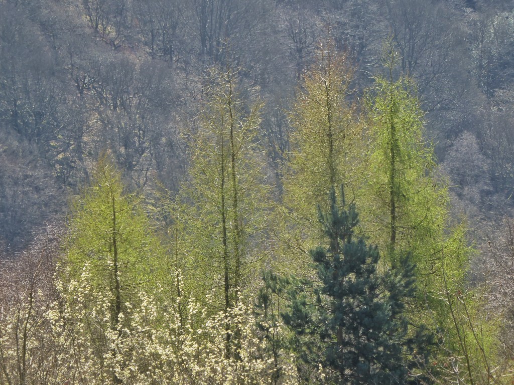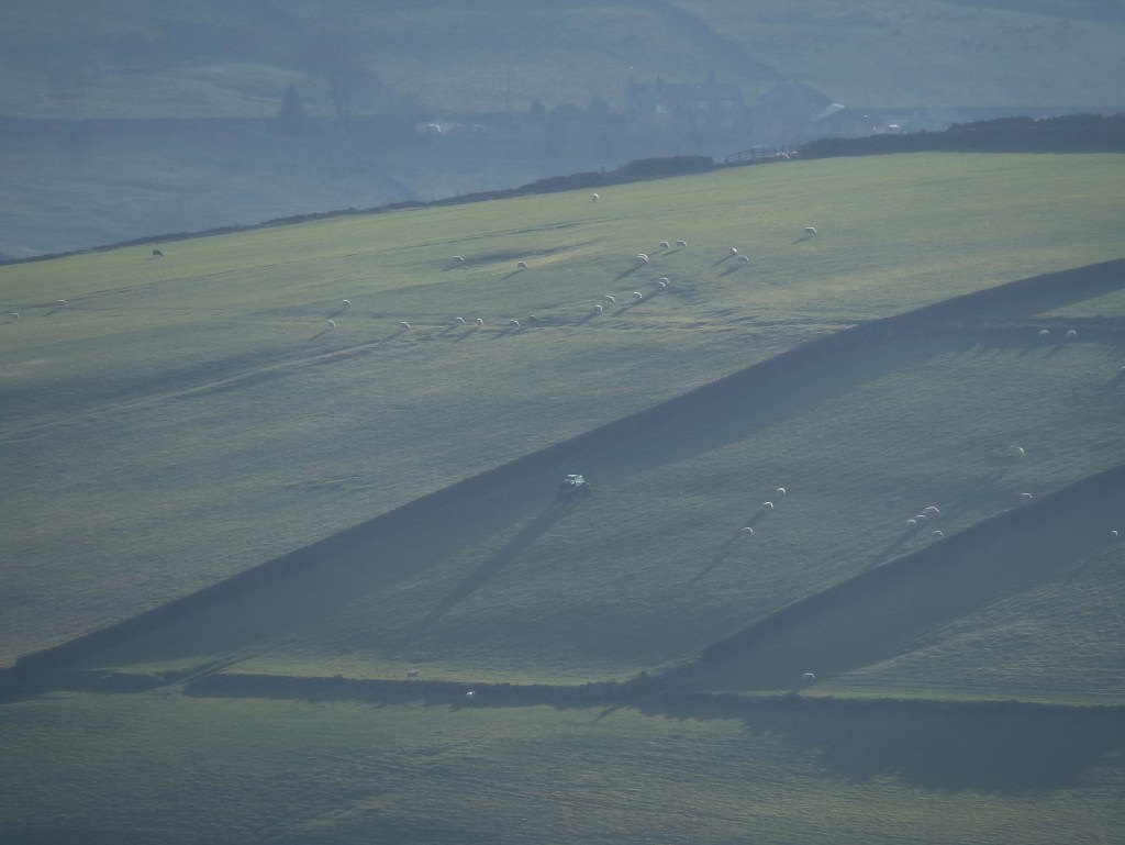 The growing strength of the sun conjures a peacock butterfly from the unpromising surroundings of a tightly-mown green in the centre of Keighley. But here, among the boys playing football and beside the endless traffic, a few dandelions and white hairy bittercress flowers are making a bid for freedom between mows, and the peacock has somehow found them. And up on the moor that separates the Calder and Keighley’s Aire watersheds, the boulders that break through the peat remain warm well into the evening. Curlew and golden plover calls drift across the plateau in the reposed air. The evening shadows of the sheep and of Adrian’s gator as he completes his evening rounds at Stony Holt Farm drape down the pastures towards the woods of Crimsworth Dean. The Gorple and Widdop reservoirs are flakes of blank white sky fallen to earth.