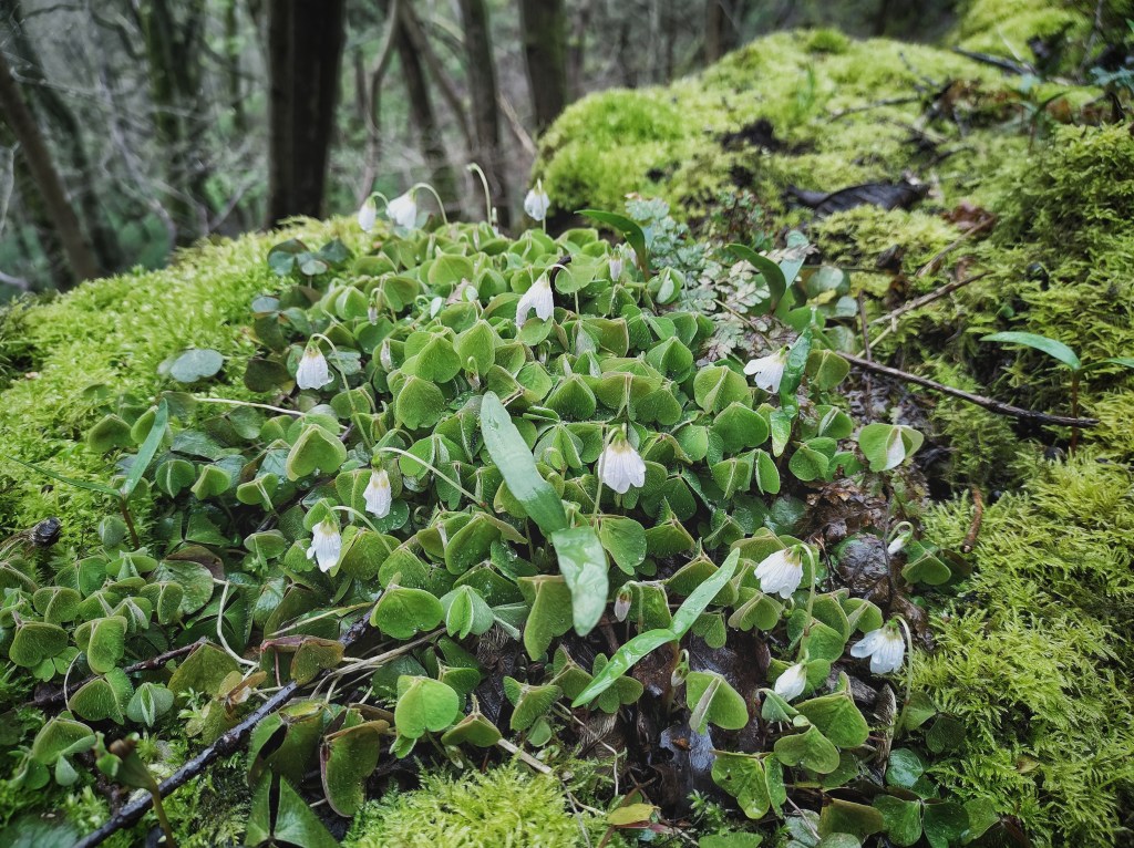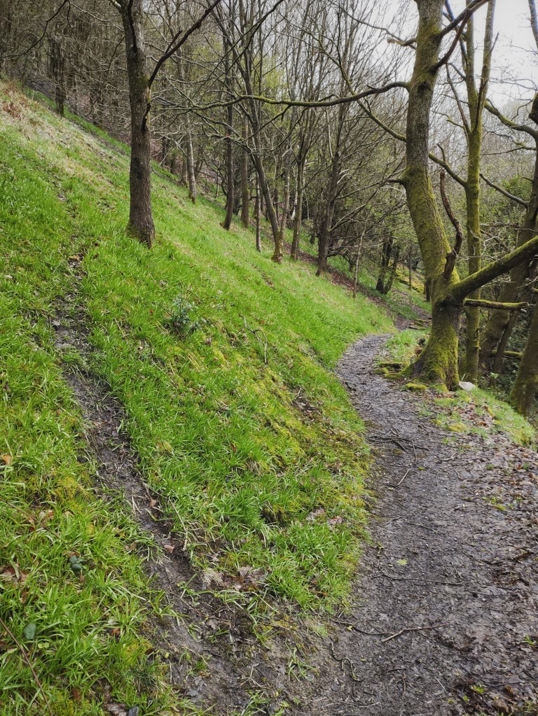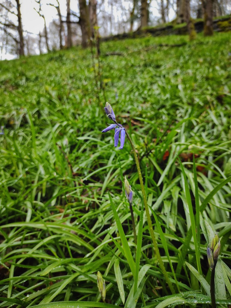In Knott Wood, a block of ancient oak woodland on the northern slopes of the valley, the gas flames of the first bluebells are already alight, but a halt is put to further flarings by the return of single-figure temperatures. Greater stitchwort and wood sorrel flowers hang hunched in shame at having jumped the gun, and the wild garlic and lords-and-ladies’ leaves are glossed with rain. The waterfalls in Dale and Jumble Hole cloughs are in full voice after a meek late winter, a reminder not to take such tameness for granted as work continues to calm them in these conditions, the latest of which are willow revetments below Blackshaw Royd, constructed in recent weeks by Forus Tree.