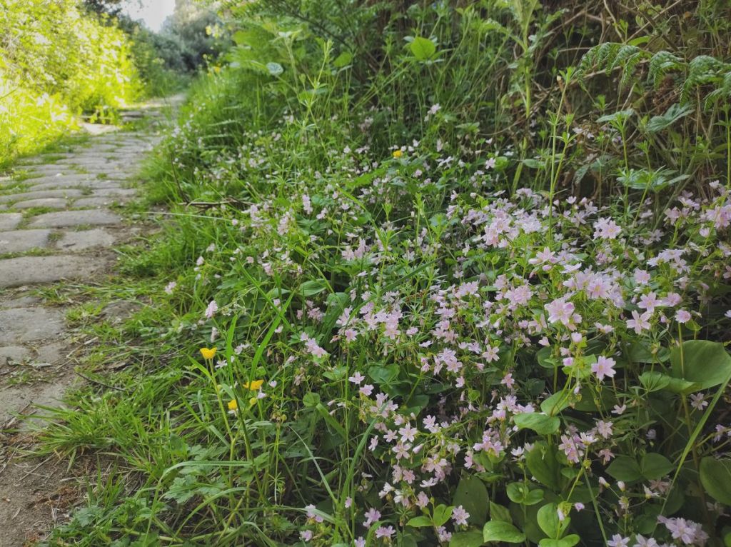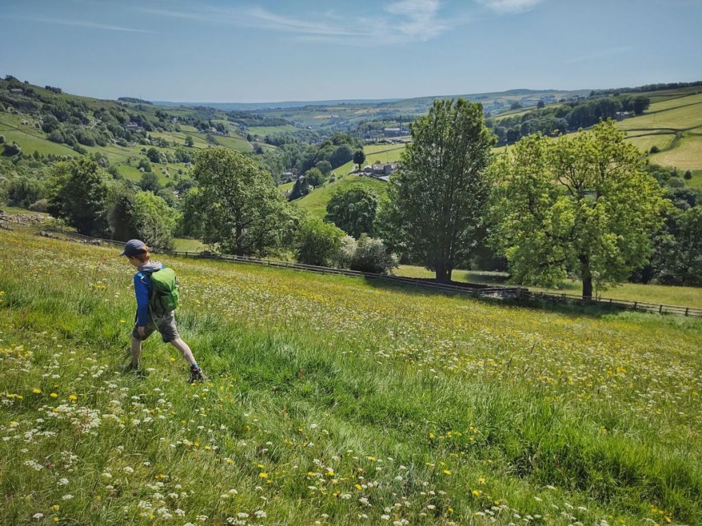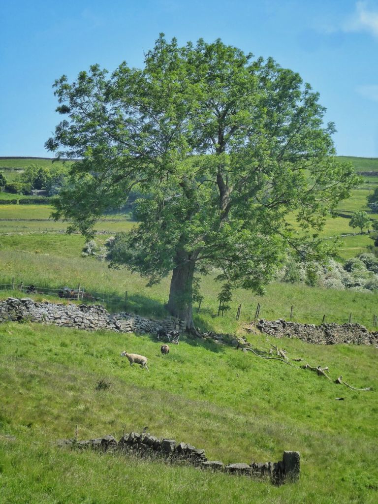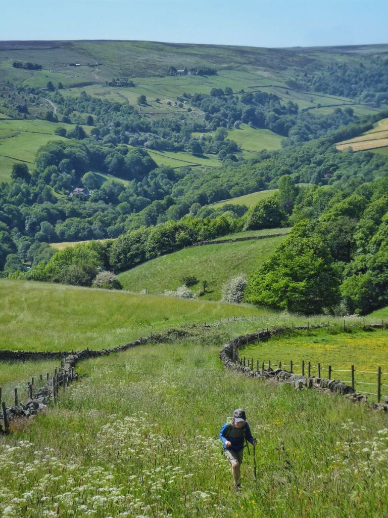 High above the church, pink purslane borders Hall Bank Lane as it snakes up beside Scout Rock, new drainage infrastructure indicating that it has caused problems funnelling water down into the village. On the other side of its ragged avenue of trees, Hollin Hey Bank is a scrubby paradise of hawthorn, holly, bramble and dog rose, the latter still sporting shrivelled hips from last year. The willow warbler song emanating from the dense thickets attests to the need for more of this halfway house habitat in a landscape that is largely either managed grassland or unmanaged woodland. Similarly, uphill in a wedge of land formed by the gradual meeting of Stannery End and Stake lanes, where spent bilberry flowers are plumping into matt green berries and elderflower buds are beginning to burst, the scratchy free jazz of the whitethroat is coming from a billowing birch. Occasionally, it launches into and fights against the breeze to stay stationary in the air while singing, before sliding down to a pine or a rowan. These edges and corners and awkward slices of land are precious redoubts for some species, and the kind of untidy habitat that thrives within them needs to be valued and incentivised in its own right.