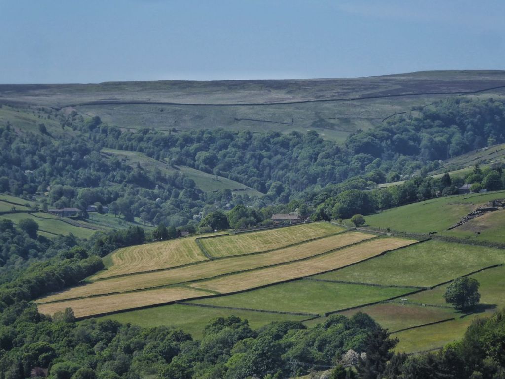 Looking across to Langfield, the embankment of Gaddings Dam visible on the horizon.