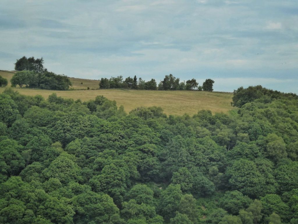On the slope above the ash, wood pigeon feathers have been scattered in a feeding frenzy on a mossy boulder under a dead beech, and closer to the path, there is the discarded covering of another animal, in the form of a collapsed tent. Litter is thankfully rare here, though as throughout the countryside, this is due not only to the sense of responsibility of almost all visitors, but also to the quiet, unheralded work of those who care in cleaning up after the minority of those who do not. The promontory of the hillside that overlooks Charlestown, in particular, is the scene of a few parties every year, and the aftermath of cans and broken glass is always swiftly dealt with.