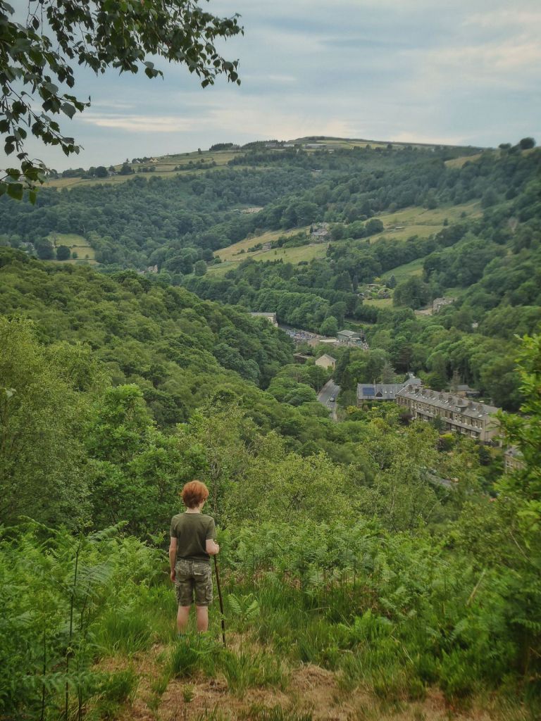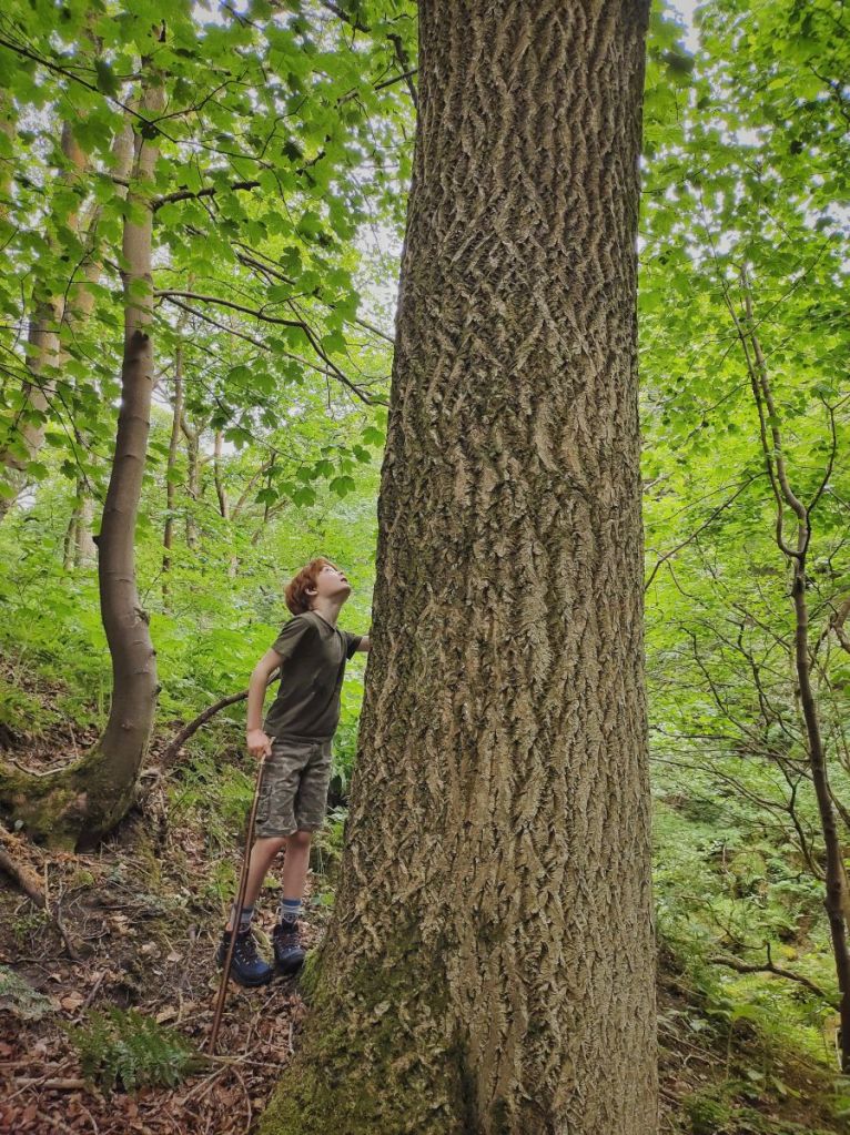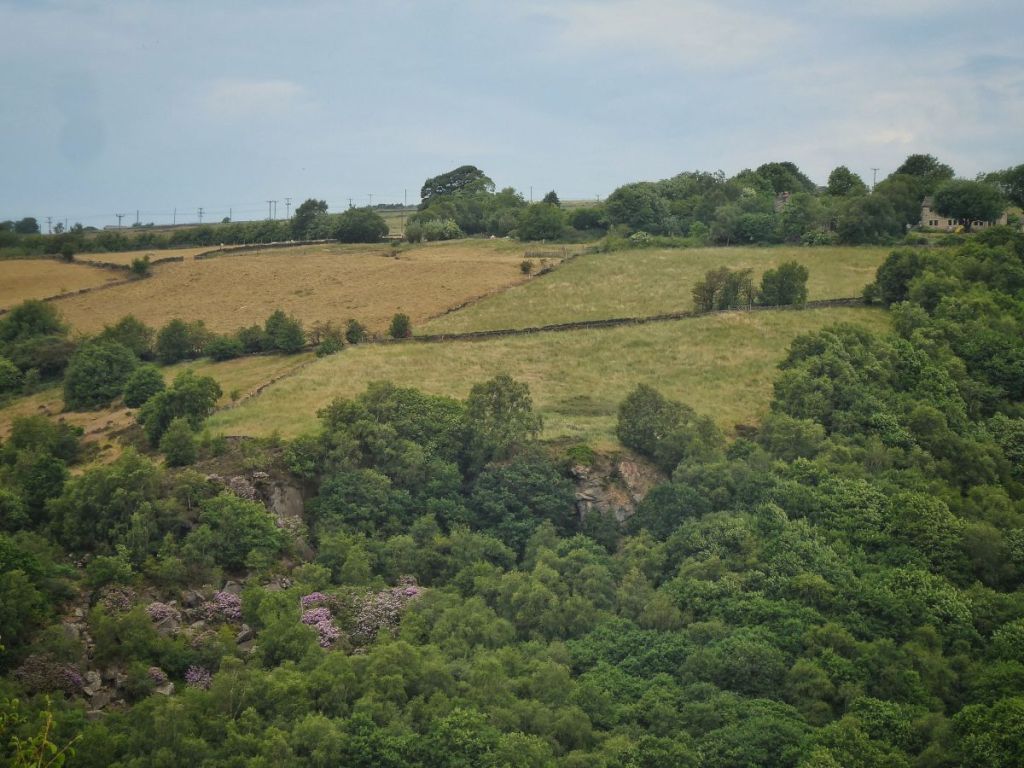 The dam finally bursts in the days that follow, the aftermath of the most violent downpour leaving channels among the leaf litter and other detritus of the woodland paths where its torrents swept downhill. In Yorkshire, as everywhere else, climate change increasingly means that if it’s not one thing (drought), it’s t’other (floods). In the gaps between bands of rain, squirrels and great tit fledglings set off chain reactions of pattering drops among the sodden oak leaves. Even when the rain leaves off for a day or longer, beside Chris’s Great Wall in Rawtonstall Wood, where Elaine’s honeybees buzz between bramble flowers and a scorpion fly steals insects from spiders’ webs, the path in the wall’s shade never dries in the dank, stifling atmosphere.