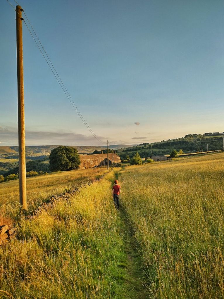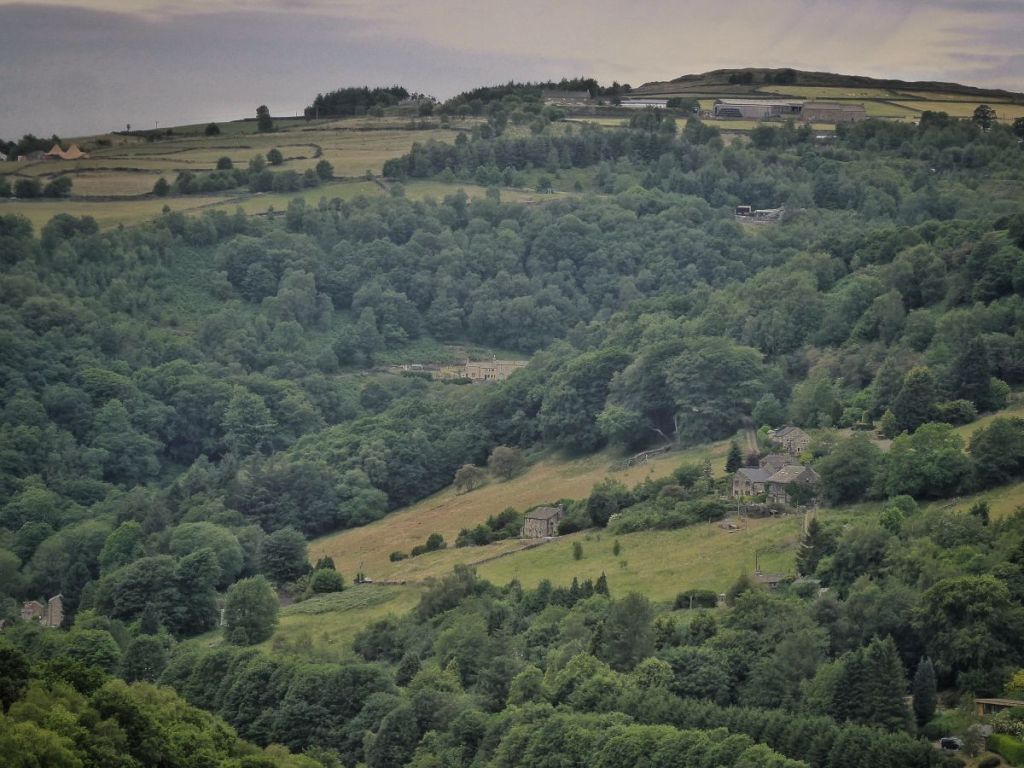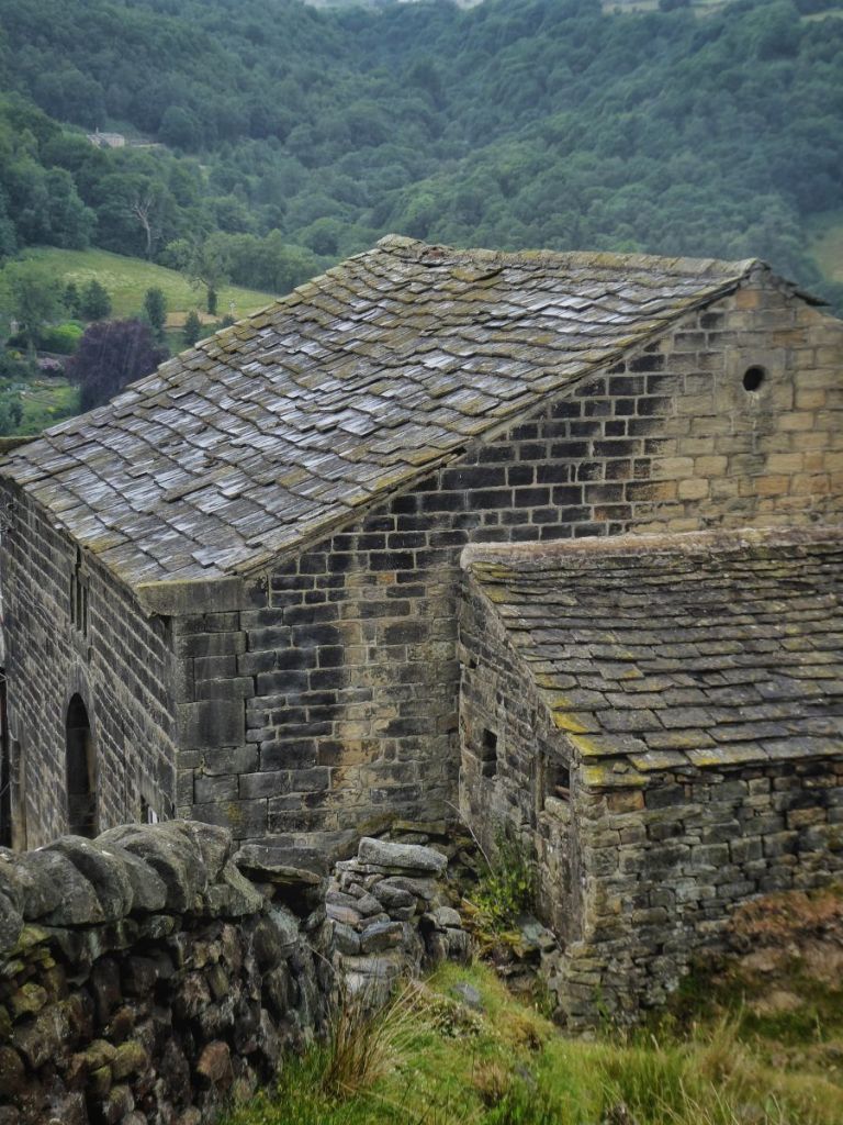 Further west along the hillside, beyond David’s farm and the jutting headland of Callis Nab; beyond Oaks Farm where the enormous Yorkshire stone slates of the roof of its 19th-century listed barn are sheened with the rain shower and a buzzard circles above the swallows that are always to be found above the Eastwood sewage works; beyond the kestrel that perches in the alders and the pink clusters of marsh valerian in the rushy flushes of Lodge Clough and the meadow brown butterfly that rests in the grasses beside Parrock Clough, lies Burnt Acres. A ruin now, ironically becoming so due to a fire in the 1960s, its roofless house is thronged with nettles, guarding the entrance to its vaulted cellar. Its barn, once stacked with hay is now glutted with elder and the creamy froth of their flowers.
