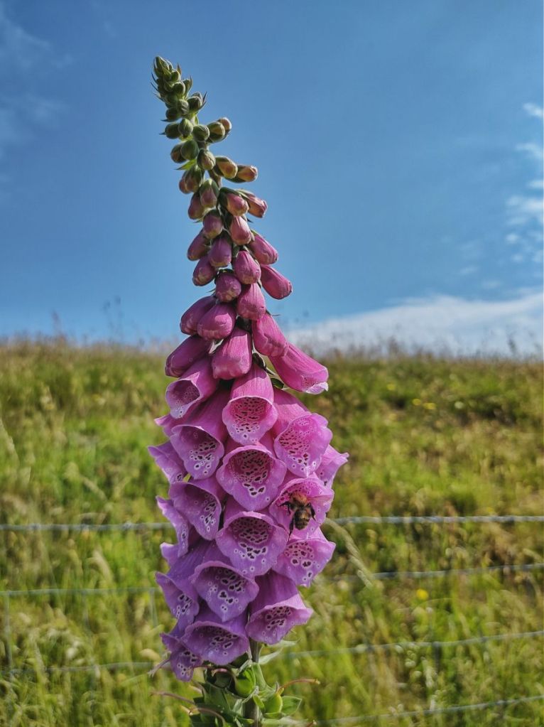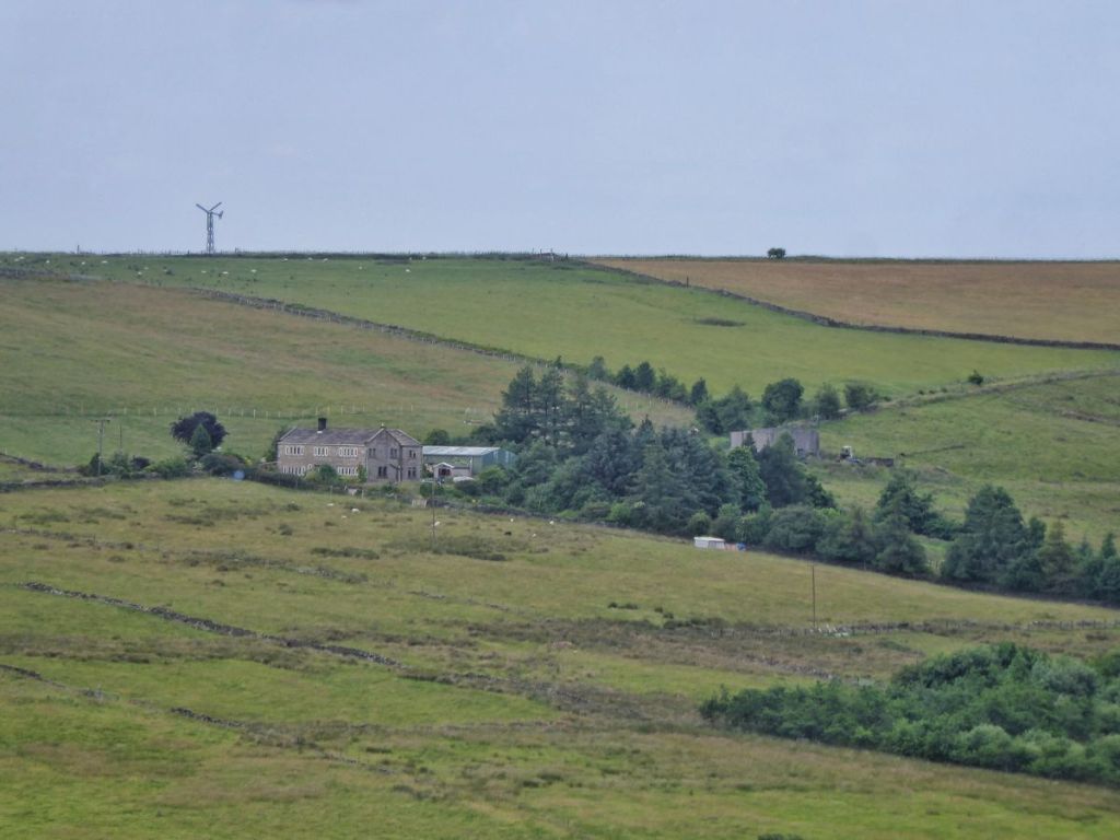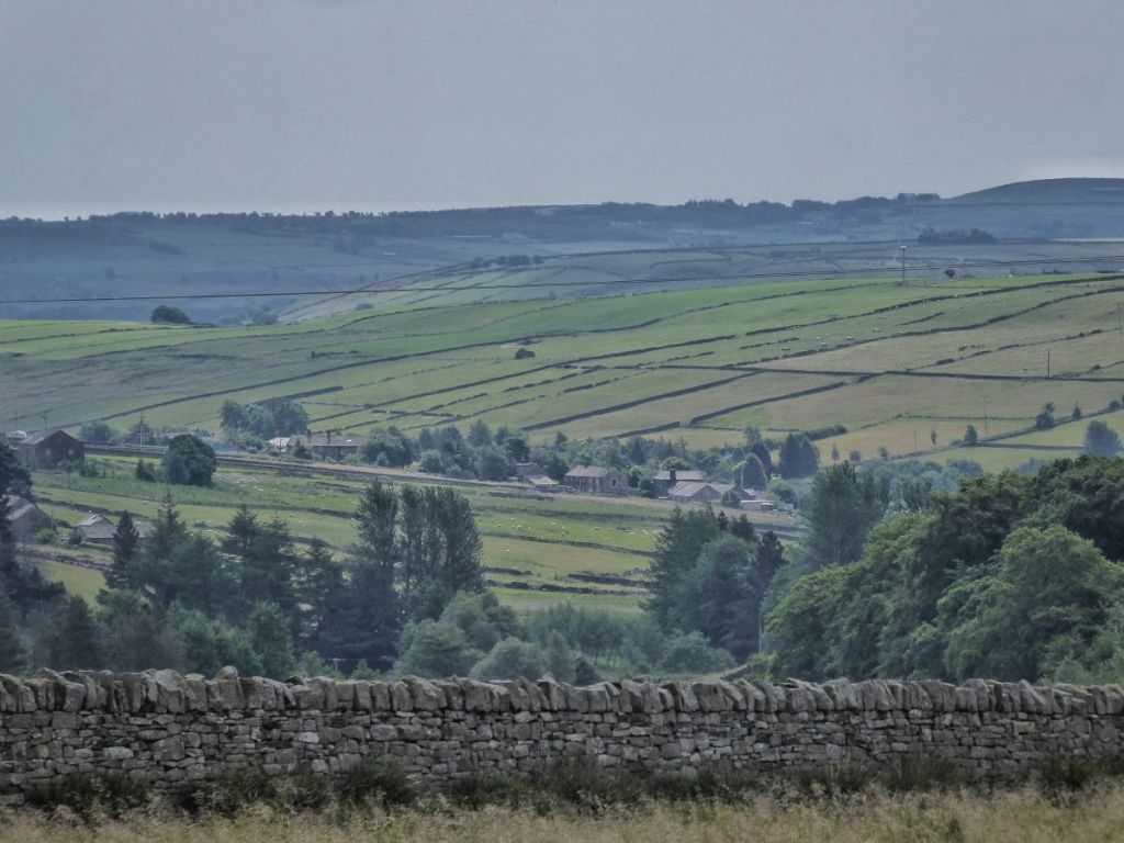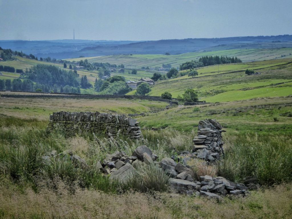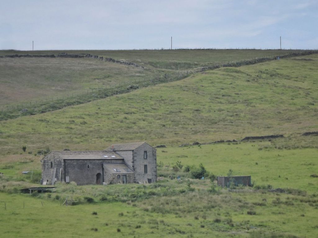 Edge Lane threads together the string of farms on the north side of the Colden Valley, and its verges are blooming and buzzing and chirping with life. House sparrows flit between cherry and dog rose and the old garages at the lane’s beginning. By the terrifying scarecrows that many a child has had to swiftly pass with their eyes firmly turned away, foxgloves lean ever further out as their purple or white flowers, into which common carder bees clamber, ascend higher and they become increasingly top-heavy. On and beyond May’s Shop there are the little bell-like flowers of comfrey, cow parsley going to seed, the gossamer geometry of goat’s beard, ringlet butterflies crawling on creeping thistle flowers, grasshoppers chafing among the first ripe bilberries near a long-abandoned tractor. Conkers are forming on the horse chestnuts at 16th-century Old Edge, their fresh green spines yet soft. Beside 18th-century New Edge, recently rescued from sliding into ruination, is its red-tinged chalybeate, an ancient iron-bearing spring spilling into a stone trough. Lane Side has not been so lucky, its dereliction more pronounced today than it was in 2000, when the late Peter Brook, the pre-eminent Pennine landscape painter, set it in snow against an uncharacteristically vivid winter sunset.