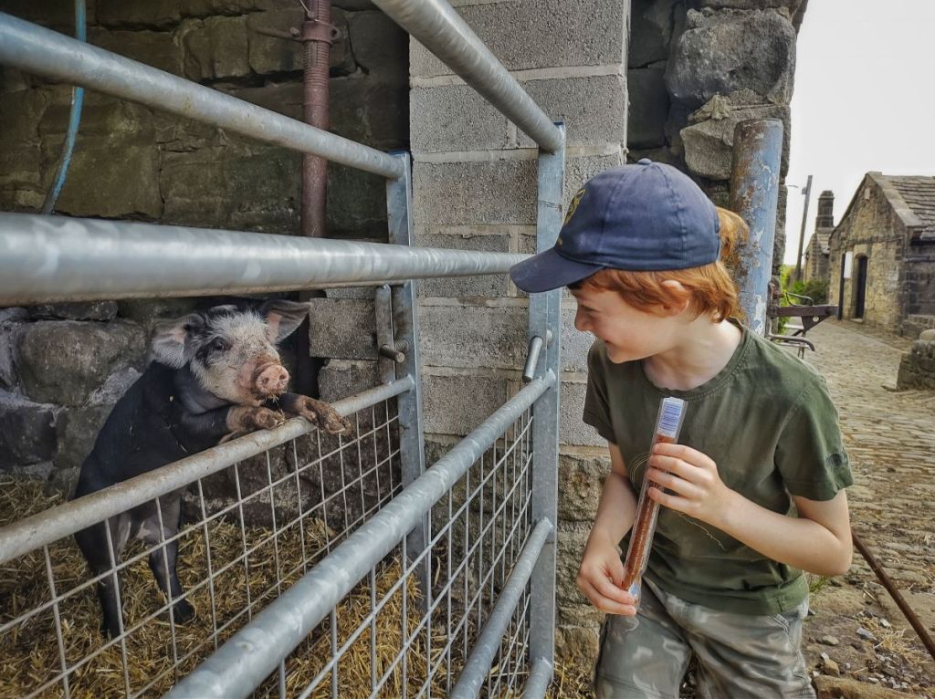 May’s Shop, open every day except Christmas Day between 7.00am and 9.00pm since 1974, is drawing customers along Edge Lane just as it has done for the last half a century. By bus, by car, by bike, on horseback and on foot, they come for the Sunday papers, for a loaf of bread, for a chocolate bar or an ice cream, for a cup of tea and a chat. A horse is tied to the iron ring on the 17th-century farmhouse while its young rider pops in for a snack. A family of walkers sit on the picnic bench opposite the early-19th-century barn, now used as a store for the shop. It is still a working farm, though; since the death of May’s husband Michael, her son runs the farm, originally hens, pigs and a milk round, but now mostly sheep, although from a little shed beside the shop there is still the squeal of 12 piglets jostling for space when their mother slumps on her side in the hay.