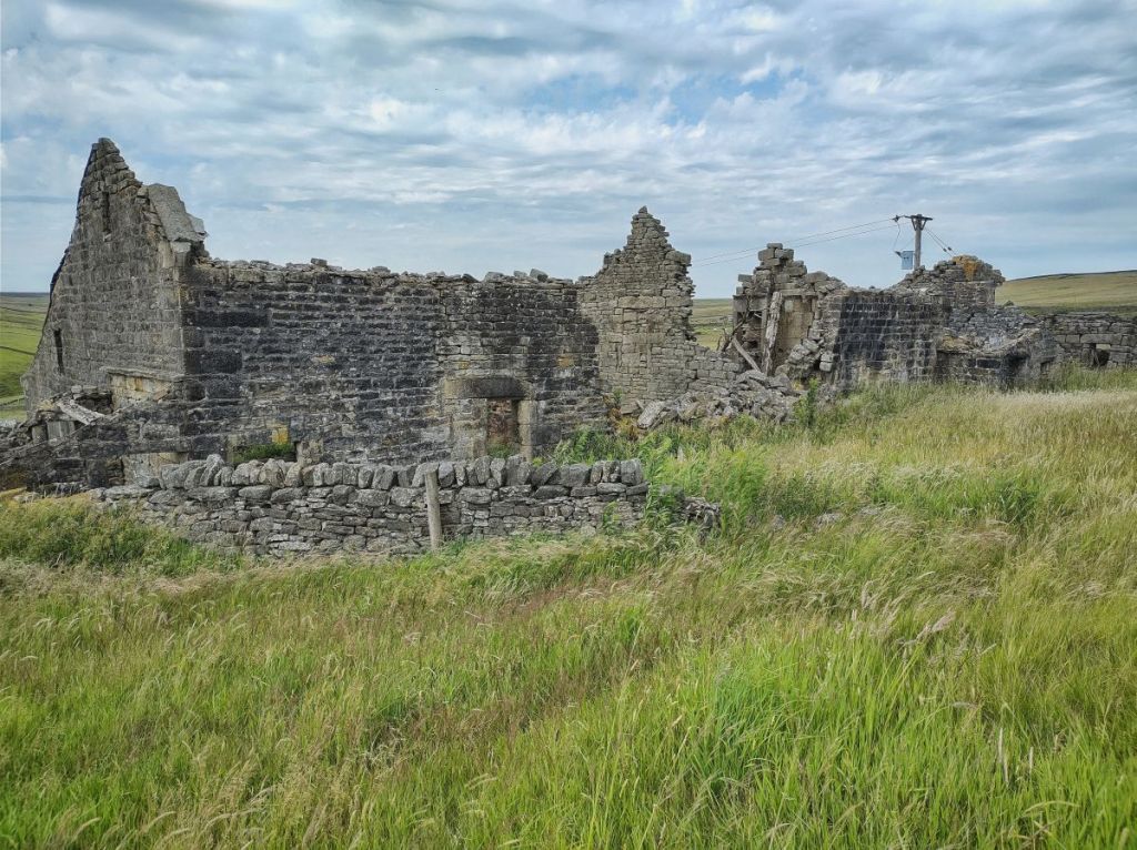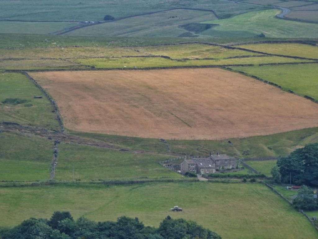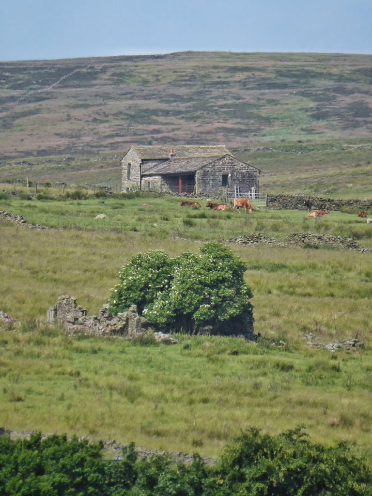 A silver Y moth flits along the collapsed walls among the 18 acres once stewarded by the Butterworths. These were absorbed into Rough Hey’s holding once Cabin was abandoned, and are now farmed by Egypt. The footprint of the farmhouse, cleared away around 1900, has faded in the 150 years since Mary last closed the door, and its memory, like the puffs of pollen released by the rush flowers as the ewes and their lambs wade through them, has drifted away on the summer breeze.