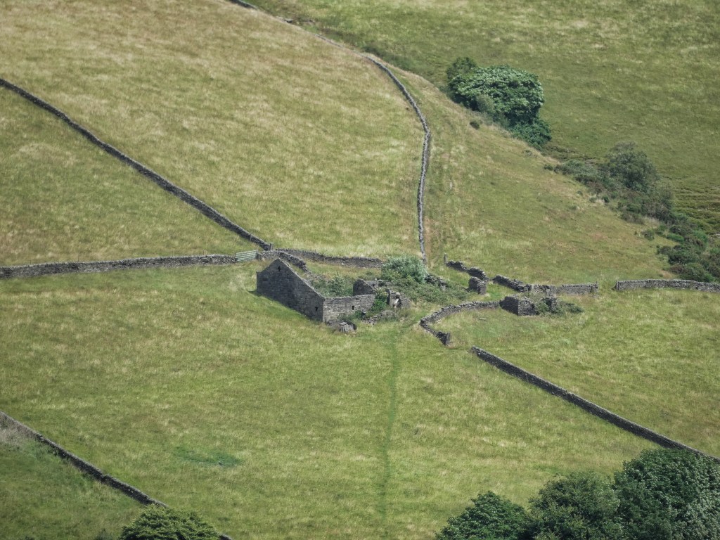 The trees that shelter Rake Head, among the most exposed of the region’s farmhouses, riding as it does on the crest of Erringden Moor, visible for miles around, somewhat undermines the theory that the trees in Erringden Grange’s highest little enclosures succumbed due to their altitude. But these trees are reasonably young yet, not appearing on the 1933 OS map. Rake Head itself is almost contemporaneous with Erringden Grange, having been built in the 1840s perhaps a decade after its grander neighbour. In the 1850s it was a workhouse, home to 14 unhappy souls. By the Second World War, it had been required by the government to contribute its largest, seven-acre field, immaculately mown today, to the war effort, sowing it with oats and roots in 1942, and rye in 1943. Quite how they fared up here is not recorded.