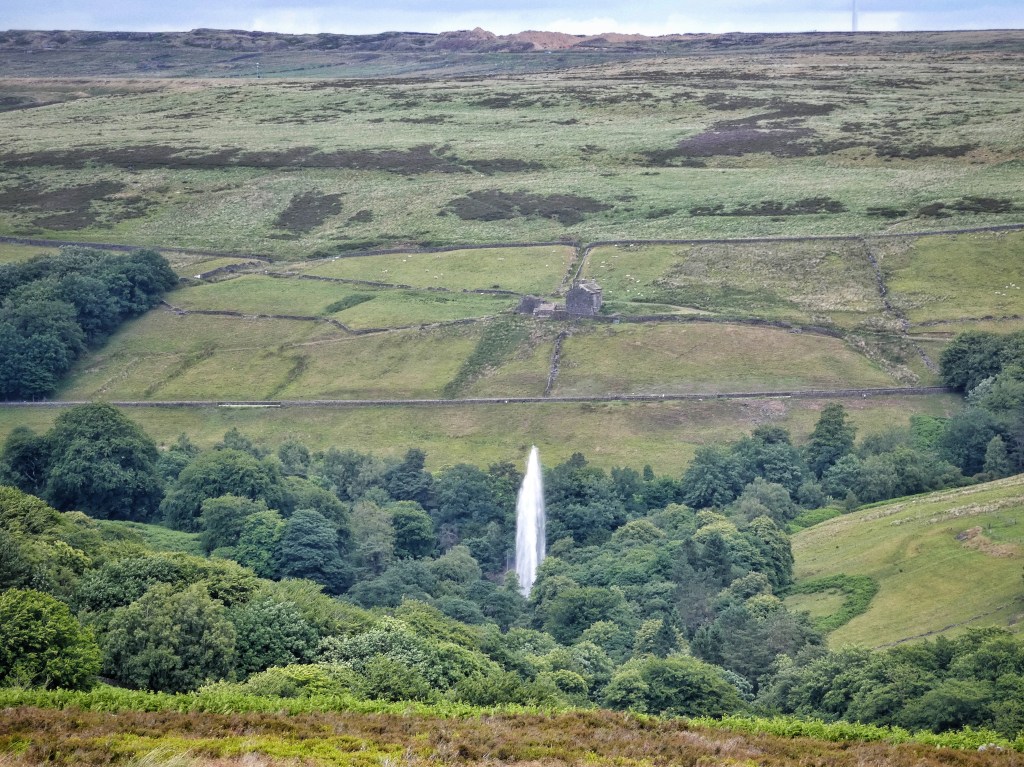 The following day, the wind has risen. It blasts up among the rushes in the wide Keelam Lane and on over the grouse butts of Dimmin Dale, a shallow depression in the Wadsworth Moor skyline, and on down into the Castle Carr estate, where the Rotary Club are shepherding visitors to the water gardens for the annual display of the famed gravity-powered fountain. For seven minutes it rears 130 feet above the trees, the last vestige of Captain Joseph Priestly Edwards’ short-lived dream.