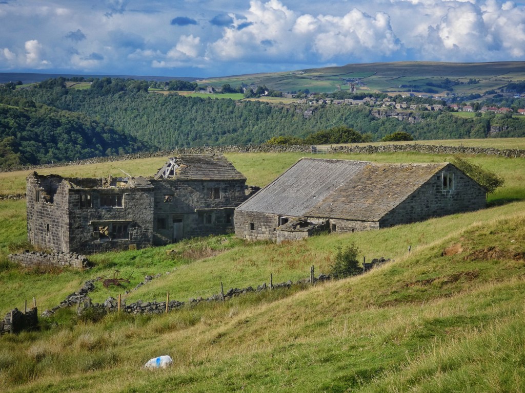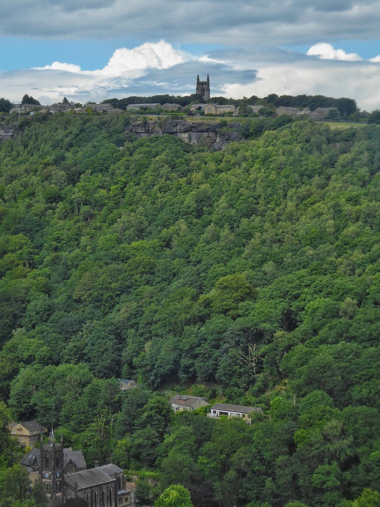St James the Great Church, Mytholm (below) and St Thomas the Apostle Church, Heptonstall (above), with Eaves Wood in between.