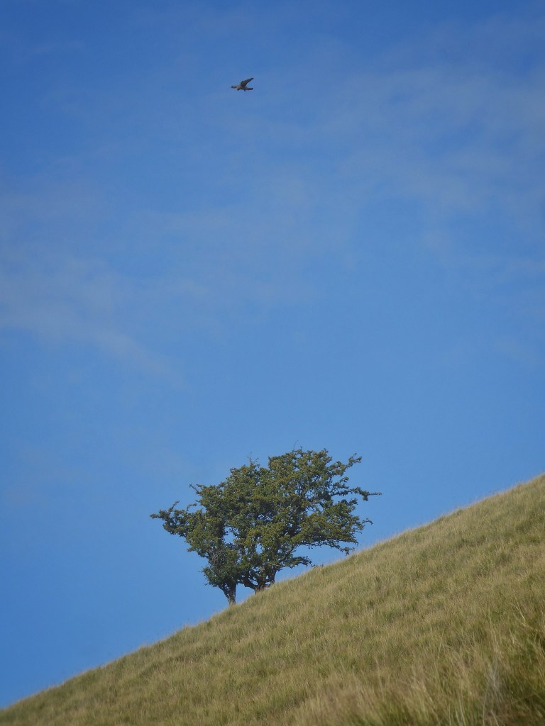 The farmers are gathering their sheep on Edge End Moor, quad bike and dogs moving efficiently among the rushes, intimate knowledge of the folds of their ground and the habits of their flock making what would be a losing battle in any other hands into a calm and graceful exercise. On the other side of the hill, their cattle herd are content that it is not their turn today, but they are not undisturbed, for above them a pair of kestrels are frantically hunting to feed their young. They stoop time after time to the tawny grasses, devoting hardly any time to the patient hovering and watching that they are so famed for in between dives. It takes 30 attempts between them before there is finally a reward for their efforts, and it is conveyed with all possible haste to the nest near Oaks Farm. The chick yickers in anticipation as the parent becomes a russet bullet, skimming above the scrub of hollies, as its mate continues plunging in seeming desperation among the wind-blasted hawthorns.