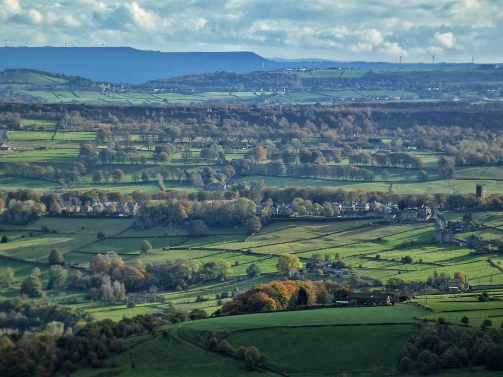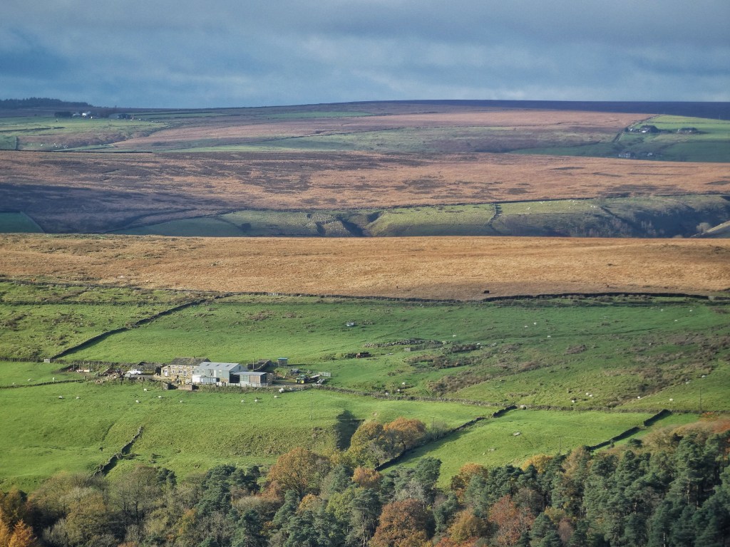 More durable and conventional enclosures reach up into the moor on the other side of Foster Clough, and are still green from the efforts of Stephen Horsefield, and his father before him. The stones of Nelmires have been entirely refashioned into a low barn, with little hint as to the original layout of the house, but the soughing wind in the pair of sycamores that stand over it is the same, and a little owl has found a roost inside. Above its topmost field, Churn Milk Joan was erected in the 17th-century as a boundary stone at the meeting of three townships, but what was used was a seven-foot monolith of much older significance, sporting as it does four prehistoric cup and ring marks. Originally known as Nelmires Stoop or Savile’s Lowe, the name that has survived is from the most well-known piece of folklore that has attached to it, in which the poor milk-maid Joan perished here in a blizzard. The tradition is that she was passing between Luddenden and either Pecket Well or Mount Skip. If the latter, she would have passed the 100-foot-diameter Bronze Age urnfield above Wicken Hill, where cremated dead were buried in funerary pots, and through the fields of Little Mount, all traces now entirely obliterated by the Hebden Bridge Golf Course, and 16th-century Great Mount, converted to the clubhouse.