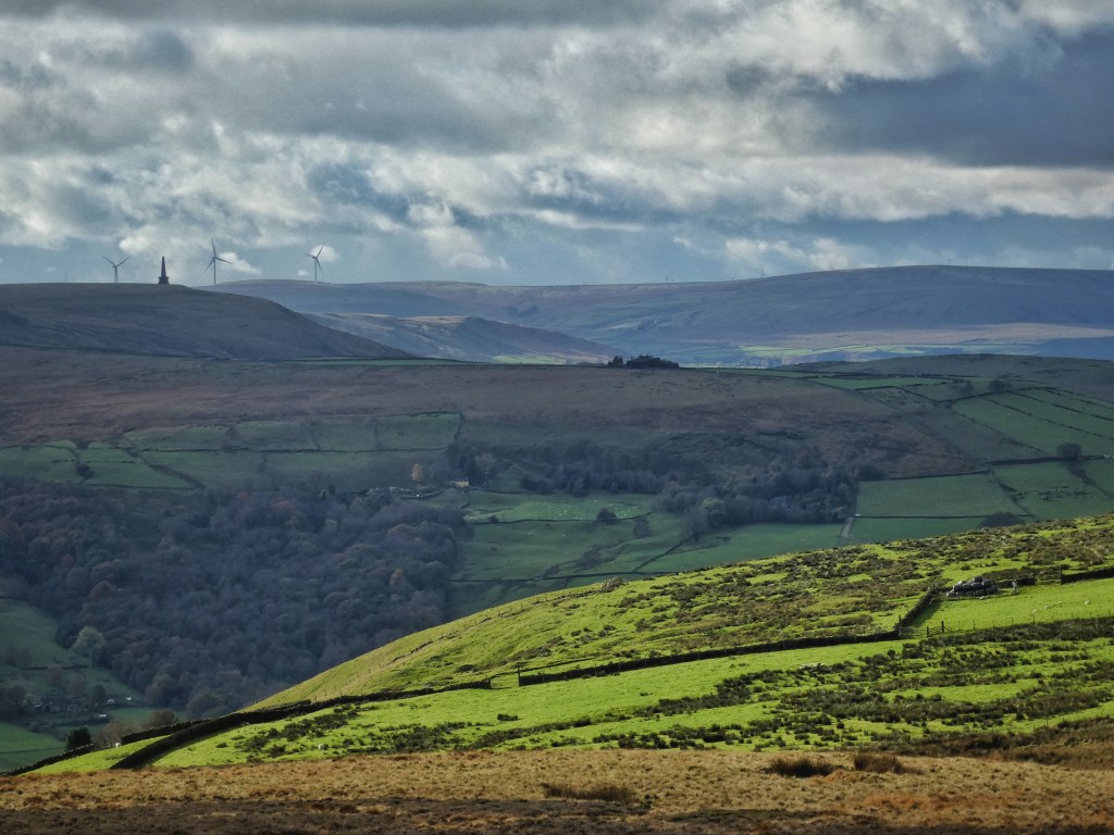 A sharp wind harries sun and shadow across the saturated moors that enfold Crimsworth Dean. Its fields were once kept green by the application of Lancashire lime transported by trains of ponies along the high route of Limer’s Gate. From Lumb Falls it climbs to Naze End, and is still well worn nearly to High Brown Knoll, but it drops under the summit before it reaches the trig point, becoming a faint strip among the rough grass. In a small mossy hollow a few yards off it, Cousin’s Spring bubbles, sending its waters down a mile-long gutter that channels them off Deer Stones Edge and on under the fields to where they are joined by supplies from the Brig Well Head Spring and the Keelham Gutter to fill Old Town Reservoir, built some time between 1892 and 1905.