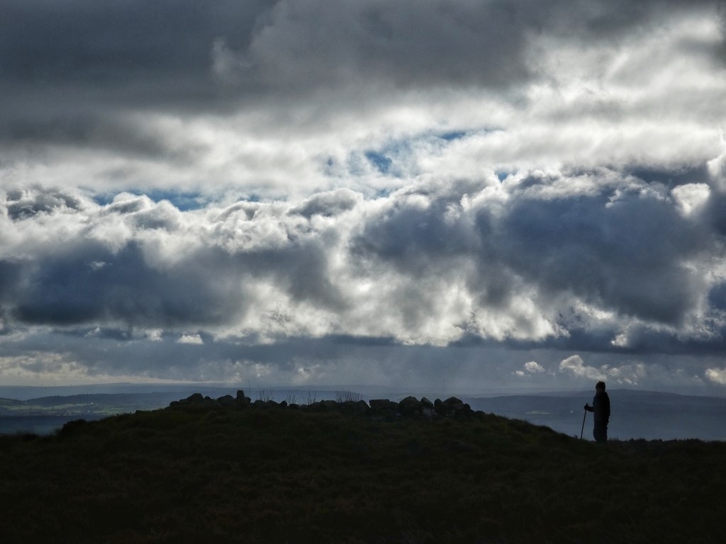 But humans have ever had their designs and left their marks upon these heights. Three thousand years ago, give or take a millennium, Bronze Age Britons were constructing ring cairns and burial enclosures on Midgley Moor, with five such sites listed as ancient monuments. Miller’s Grave consists of a cleft glacial boulder surrounded by a bank of stones, its name – from an 18th-century story of a murderous miller interred here for a time – much more recent than its origins. The nearby Robin Hood’s Penny Stone – its name also derived from more recent custom and myth – is a glacial erratic in a fascinating solar relationship with Miller’s Grave: the midwinter sun rises from the grave from the point of view of the Penny Stone, and, as recently observed by John Billingsley and Akiko Kuroda, the midsummer sun sets behind the stone from the point of view of the grave. Three other cairns, variously between 16 and 52 feet in diameter, thought to be funerary or other ritual monuments, are clustered lower down the moor, only a few exposed stones and the outline of low heathery embankments giving away their location. Conjuring the scenes of their creation and use in antiquity, and conceiving of their importance to unfathomably distant ancestors, is a much greater task, though, than finding them.
