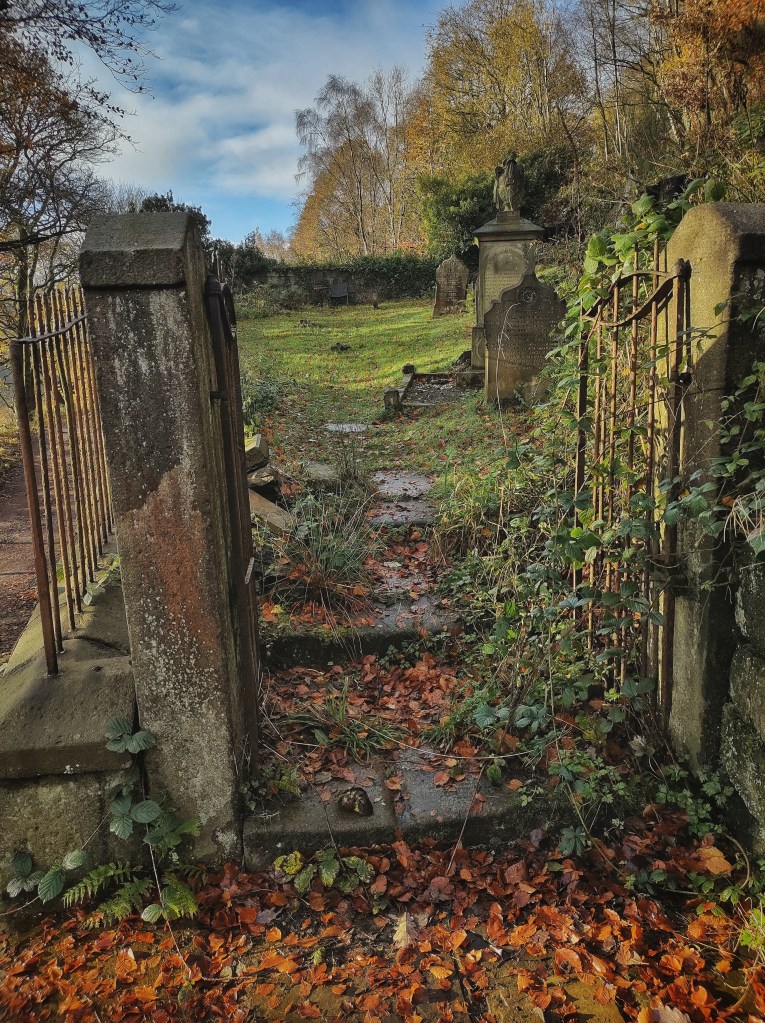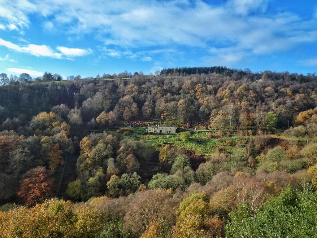 Before the mills, farms had already cleared space for themselves among the woods and made the best of the spare light and ferocious inclines. Broad Dean catches all the morning and midday sun it can from where it clings halfway up the clough’s western face. At the edge of its plummeting fields is the finest set of stone steps in the district, 226 of them, descending 200 feet in an arrow-straight flight, all the quicker to speed workers from the tops down to the mills. Dean Bottom is tucked further into the clough, closer to the endless rush of its waterfalls, whereas Roundfield found itself a perch much higher up, and with its ducks and piglets, goats and ponies, vegetable beds and stables all immaculately kept, there can be no smarter smallholding for many miles. The house at Beverely End, where the Bentley family lived for decades in the 1800s, has gone, but what remains are its extraordinary terraces, which Graham Cooper believes to be tenter terraces for drying woollen cloth on frames, and which contain a number of bee boles for housing wicker beehives known as skeps. Every spring, just as the sycamores that have long colonised these terraces are preparing to come into leaf, they are a torrent of bluebells and ransoms. Some of these families would have attended services at Mount Olivet Baptist Chapel, above the crags of Naze, demolished in 1946, leaving 47 souls slumbering in its graveyard.
