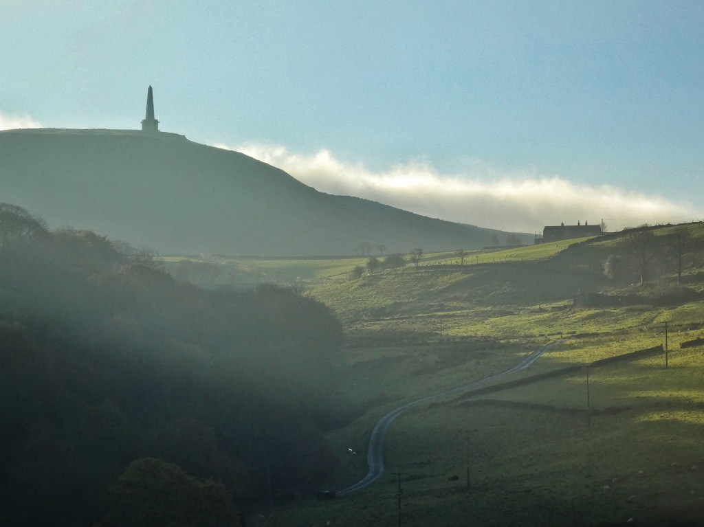 The sunlight has almost finished pouring down the precipitous slopes of Common Bank Wood, slowly, with the viscosity of treacle. It has reached the windows of Mulcture Hall, built by the Stead family around 1800 and occupied by their descendents eight generations later. It gazes down into the remaining shadows in Mutterhole Holme, and up to the glowing trees on the skyline of Callis Nab as the sun clears the promontory. In the pasture beneath the hall, a piebald pony, accompanied by a piebald magpie, is almost at the end of its frosty wait for the melting sun. Woodsmoke and boiler steam rise from the houses that have clustered in the grounds of Underbank Hall, where Anne Lister recalls the grand entertainment laid on by the wealthy Rawdon family in the 1820s.
