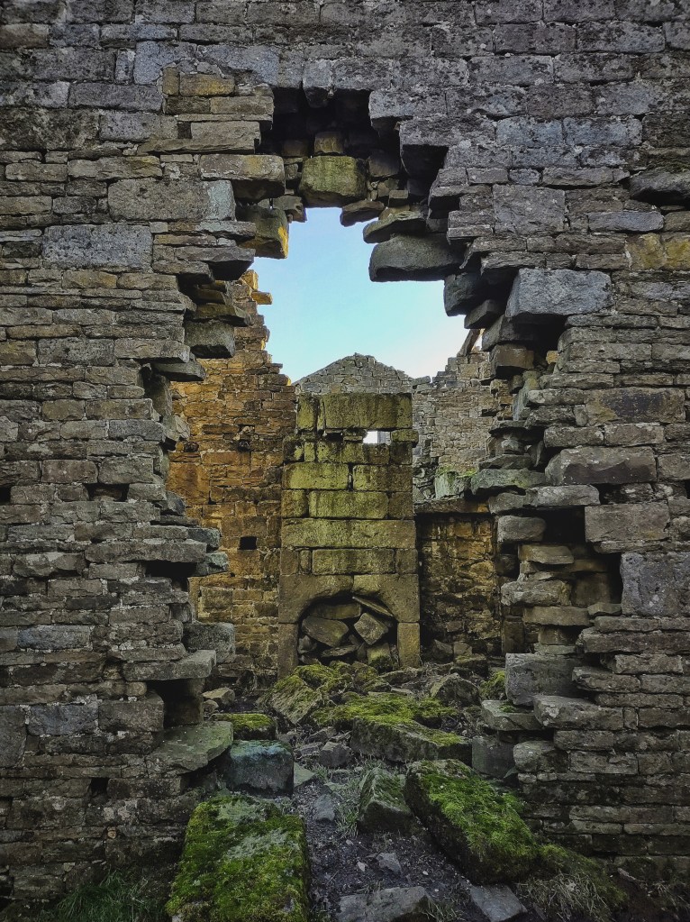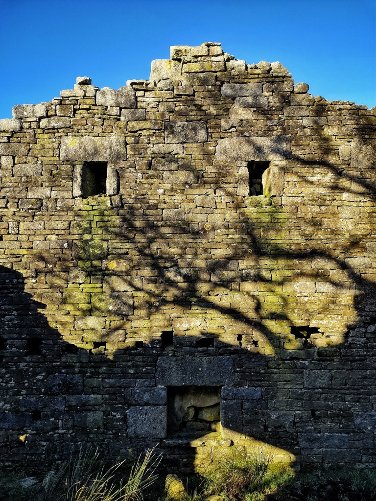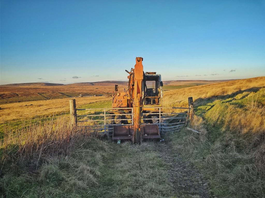 Across the most recent structure, Crabtree Field is less a farm than a cottage, its still weather-proof interior illuminated by the lowering sun, but only a stone and a scoop in a pasture gives away that Ling Bob, abandoned by the 1860s, ever stood here. A short-lived attempt at resurrecting High House was made in the 1990s, with teetering stacks of breeze blocks among its remaining walls betraying an intention that was never followed through. Instead, its former fields subsequently became a bizarre graveyard for all manner of machines, trucks and cranes, excavators and construction conveyors, fork lifts and other unidentifiable vehicular victims, all haphazardly cast among open-sided barns. To whichever end they were once brought here, it surely cannot be achieved now, and the owner has been ordered to clear the site, though the scale of the task is unimaginable.