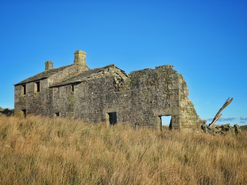 The far end of this high ridge, spongy with cushions of cross-leaved heath, plummets into the shadows of Hameldon Holes and the bowl that cradles Gorple Upper Reservoir, the third and final demand on these moorland cloughs made by Halifax in the late 1920s. The wind that whips over the pass of Gorple Gate slaps waves against its dam, and its conduit snakes round under the strange Hepworthian arch of the Boggart Stones into the former fields of Raistrick Greave. Marooned on a 15-acre island of enclosures in the vast moorland sea, abandoned by the young Mitchell and Stansfield families in the 1880s, it has withstood nearly a century and a half of winters with only its sycamore, whose shadow plays on its walls, for company.