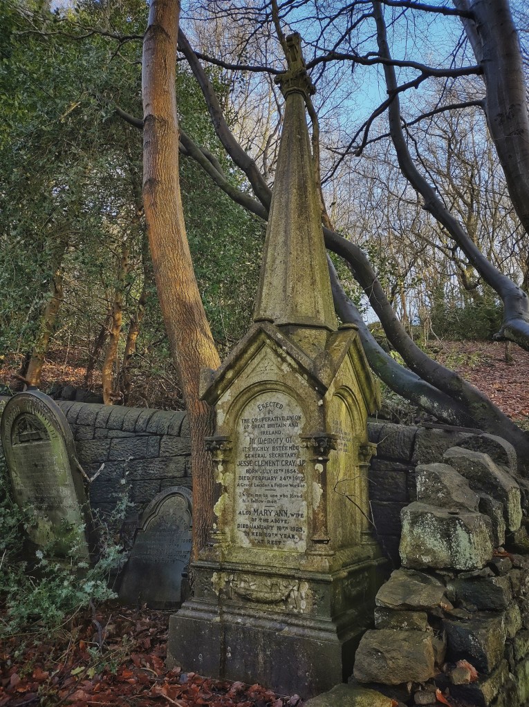 The grave of Jesse Gray, a central figure in the town’s co-operative movement, in the graveyard of the second Birchcliffe Baptist Chapel, in use between 1825 and 1899.