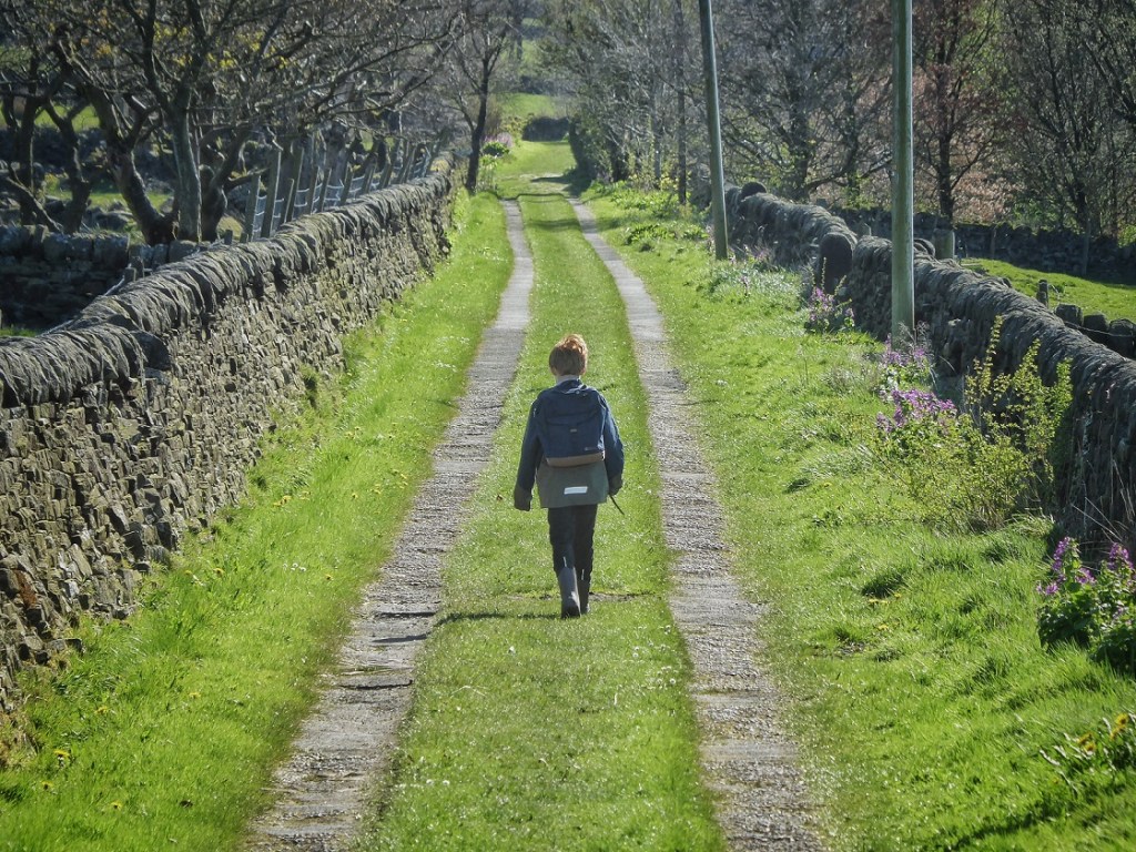 It’s all lasts now. Last time passing that holly, last time crossing this stile. The landmarks along the route will be marked into your memory, and mine, for the rest of our lives. The stile, the steps, the little bridge. The tiny stream that torrents in winter when you leap over it Indiana Jones-style, and then quietens to its summer silence. The old stone water trough sunk beside the track. The boulders and their little caves. The footpath signposts. The dry stone walls. The soles of your feet have come to know the path’s every gnarly root and mossy stone. And through these years of walking, you’ve learned how to find your way out into the world – and you will, I hope, never forget the way home.