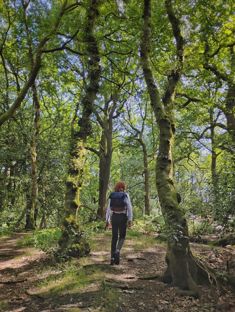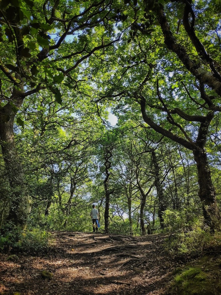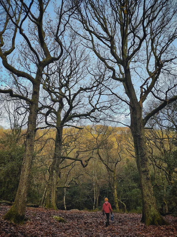 I love the way you always leave the path to walk through the middle of that birch with the split trunk, like it’s a portal to another dimension. By now, after all these years, we know every tree along the way – they’ve become old friends: that oak back there with the anti-clockwise twist; the ash sapling that resisted getting dieback for so long; the sweet chestnut that drops its catkins onto the path like furry centipedes; the whitebeam whose leaves curl and crisp to silver in autumn; the wych elm that scatters its papery seeds beside the stile; the willow which fills its glade with glinting downy flakes on warm May days. We pass rowans writhing out of stony nooks, sycamores coppiced long ago racing for the light, beech clinging to the sides of the clough, dark stands of spruce, shadowed groves of holly that feel a little bit sacred. But it’s the oaks of this ancient woodland that we love the most – solid, sheltering, constant. Trees to grow up among.