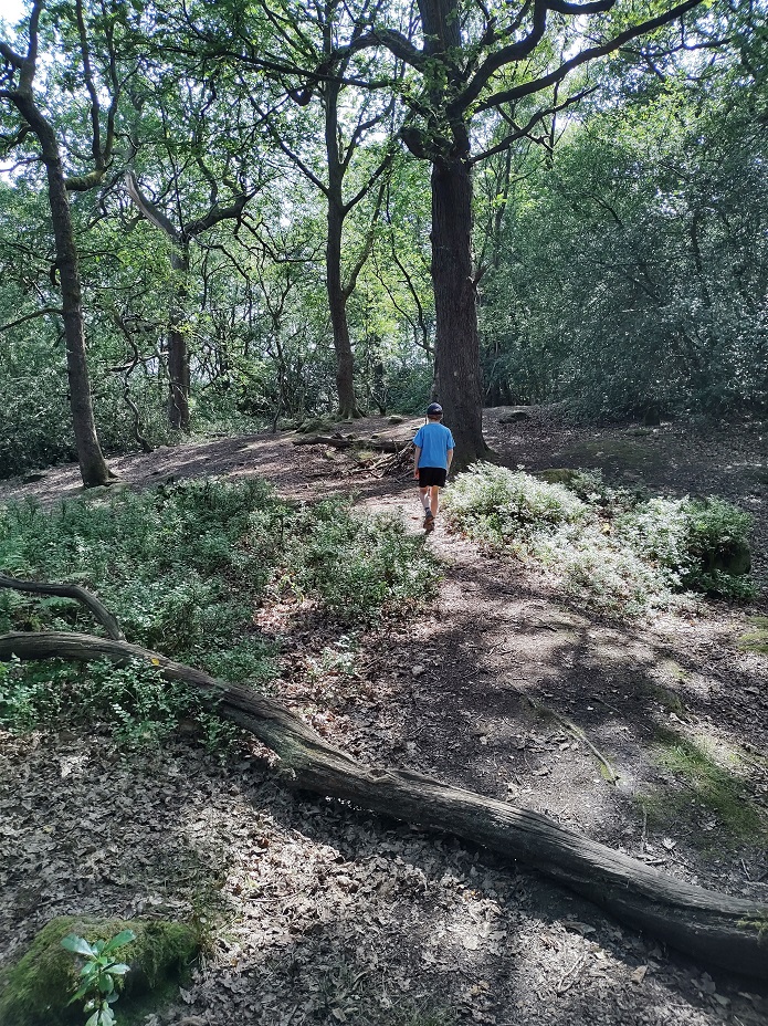 Go on – have a go on the rope swing. We’ve got plenty of time. And this has always been one of your favourite parts of the walk. You played on it every morning and afternoon for a long time, then it broke and was out of action for a while, but this year it’s been better than ever. You’ve perfected your spins and dismounts, and being able to gracefully swing out wide to tap its giant oak support with an outstretched foot. But it’s not only this rope swing that keeps you occupied and entertained on these walks: you’re always hopping from stone to root to stone when the woodland floor turns to lava, or stealthily creeping off the path ahead and leaping out at me from behind a tree, or collecting acorns and cherry galls and sticks and feathers, or harvesting bilberries, brambles and wild raspberries, your lips and hands stained with juice. Most of all, though, this has been time to talk, about school and Star Wars, games and galaxies, questions and curiosities, worries and wonders. It’s the walking that has created the time, the quiet, into which our conversations could unfold.