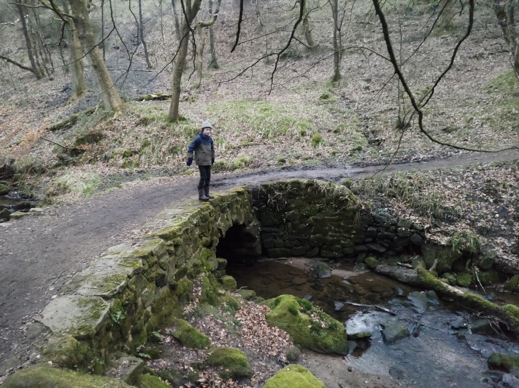 That pull up that first set of steps each morning is always a challenge. It’s worse some mornings than others. When we’re really feeling it, we always call out ‘lead legs!’, don’t we? When our legs feel like they’re made of lead, and we’re having to drag their heavy weight up the hill. But to take our minds off it, do you hear that mellow whistle? Can you tell what it is? Dead right: a bullfinch. These woods really have been your classroom for learning birdsong. Over the years, we’ve found all sorts of little tricks and mnemonics to help you tell them apart, until these days almost every note we hear is familiar to you: the turning squeaky wheel of the goldcrest, the collared dove’s complaint about its hurt toe, the blackbird’s pinking and clucking, the robin’s R2-D2 noodlings, the wren’s machine-gun trill, the laughing yaffle of the green woodpecker, the jay’s furious tearing up of the silence, the winter-harsh caw of the rooks, the clear bell chime of the great tit, the bicycle pump of the coal tit, the nuthatch’s dripping tap, the treecreeper’s rushed and cut-short willow warbler impersonation, the chiffchaff’s questioning contact call, the purring chatter of long-tailed tits, the tuneless free jazz of the blackcap. And I imagine that wherever you hear these birds in the future, they will always transport you back here – not just to the woods in general, but to exact, particular places along this route: a goldcrest to the conifers where we always paused to catch its sparkle of song; a collared dove to the track where we heard one cooing each morning; a dipper to the clough stream where one always pierced the water’s roar with its needle-sharp call; the ‘chip’ of a great spotted woodpecker to the oak tree with the hole from which their chicks peeked and begged for food. You’ve made a map of songs, one that could only have been stitched by season after season of treading this same path.