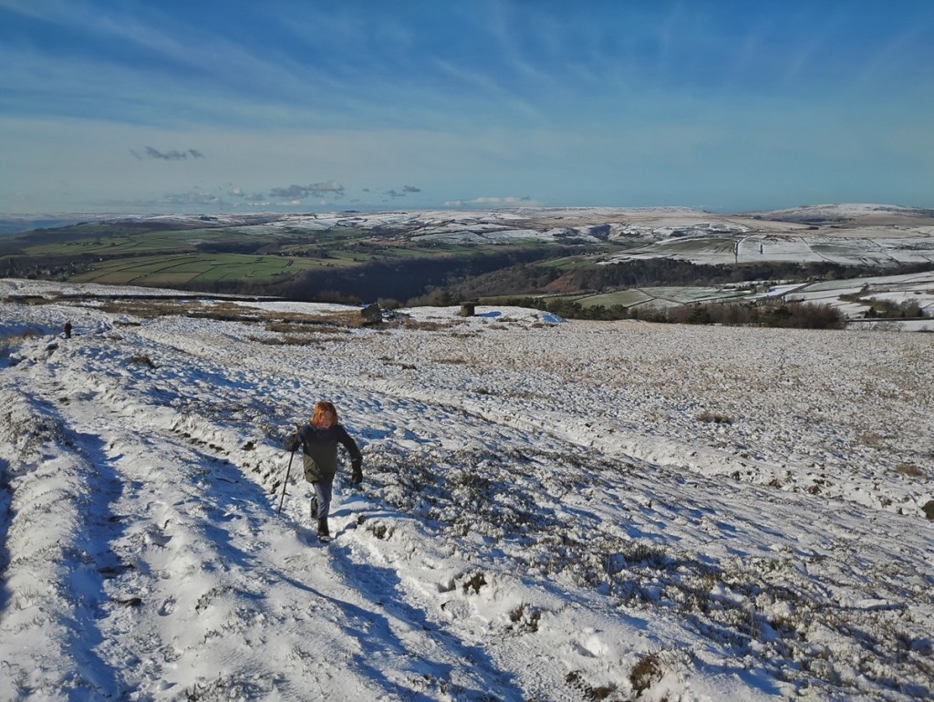 The wonderful Ann Kilbey gave a talk at the Hebden Bridge Local History Society about her work building the Pennine Horizons Digital Archive into an astonishing collection of more than 70,000 images. We later joined her at two of a series of Pennine Stories events that opened this archive up. After a snowy walk on the moor above Old Town we dropped in to Wadsworth Community Centre at the first, and later, at Blackshaw Head Methodist Chapel, we pored over her latest acquisition – some very special photographs taken in the 1970s. The locations of some of these still need identifying, and have been proving a good excuse for me to have a pedal around the tops working them out when I have a moment. After saying bye to Ann at Blackshaw, we strode up to Strines Clough and across the Colden Valley, where we saw a glorious abundance of curlews, fully forty calling and wheeling across the greening fields.