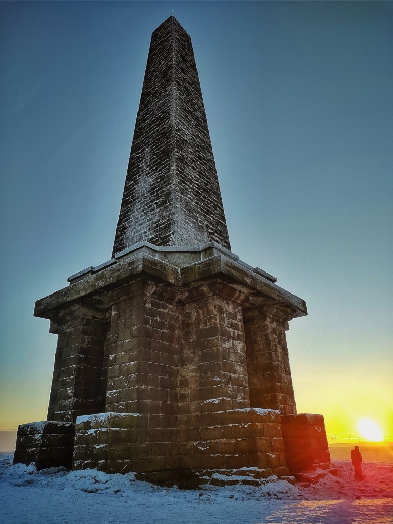 The freeholders met within a week and resolved to rebuild. Subscriptions were again raised, and in 1854 a new design by James Green of Todmorden was chosen: a 120-foot obelisk with a gallery at 40 feet and a short stairway leading to it from within. The monument was set slightly further back from the exposed edge, and completed in 1856 when peace was again declared. Later repairs in 1889 added a lightning conductor and a grill to admit light to the stairwell. For over a century and a half, the obelisk has withstood the Pennine weather – black, severe, and unmistakable – a monument not to war but to the difficult endurance of peace.