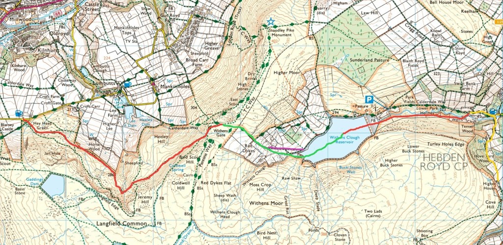 The Mandike is the oldest, but not the only ancient ditch on our moors. The Erringden Deer Park appears, according to Nigel Smith, to have used the Mandike as its northerly boundary from its creation in the 1320s until its expansion in or before 1385,22 but it also needed boundaries on which to mount its oak paling fence running down from the high moor to the valley bottom. There is a possible line of its boundary ditch on the south side of Withens Clough downstream of the reservoir dam, and a 270-yard stretch of its ditch remains visible between the Pennine Way and London Road above Strait Hey.
