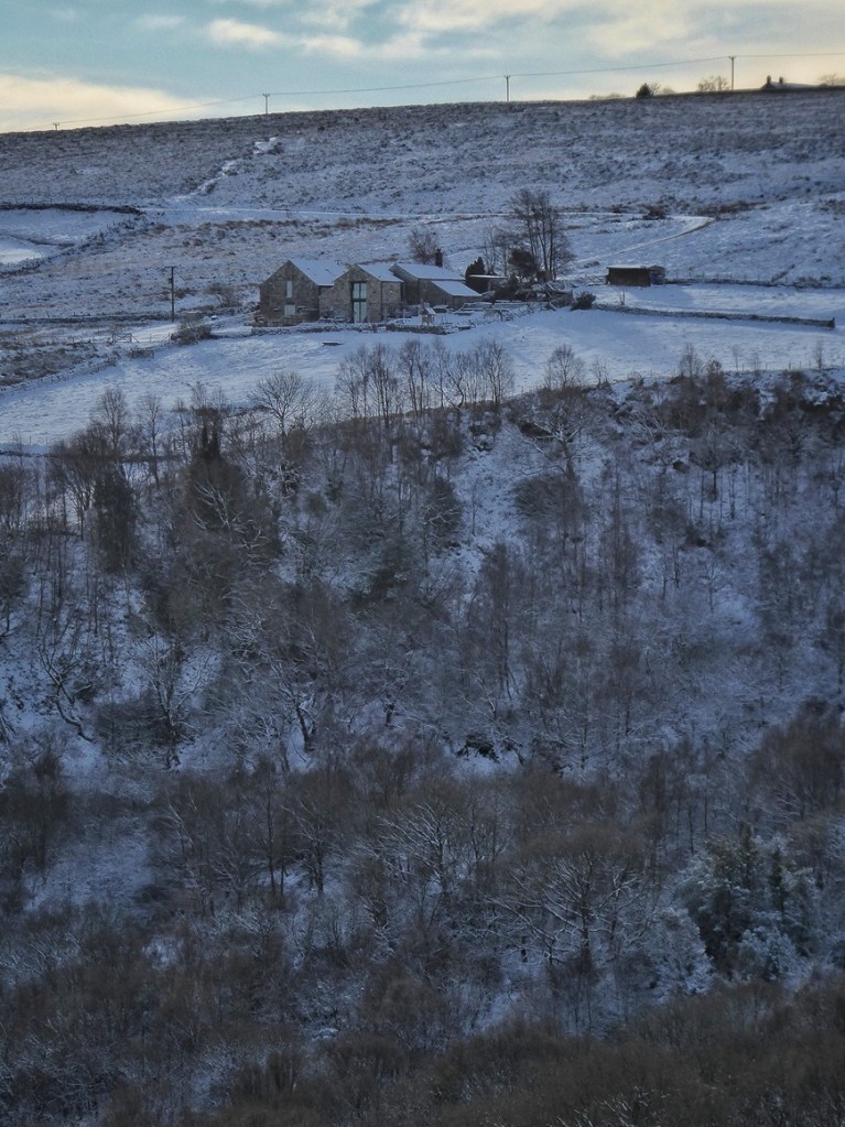 When the climate began to warm, the melting of this vast volume of ice unleashed torrents of water that carved deeply into the landscape. Meltwater rushing eastwards through the Cliviger gorge to the north and the Summit gorge to the south converged at Todmorden and thundered down the valley, deepening and steepening its course.6 The impact was immense: the Calder Valley was gouged by as much as 150 metres, creating the striking ‘valley within a valley’ most of us live in today. This inner gorge – the narrow trench of the modern river – lies far below the broad upland terrace that still holds the farms and lanes of Langfield and Erringden. From these higher shelves, the deep inner valley is invisible until one stands on its brink, where the ground suddenly falls away to the river far below.