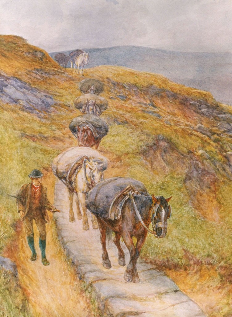 Keeping the fields green in the Calder Valley demanded constant care. Every scrap of fertility had to be earned and guarded from the hungry moor, ever waiting to reclaim what had been taken. Lime was carried by trains of Galloway ponies from the kilns at Boulsworth to sweeten the land, winter muck from the mistals was forked onto sledges and dragged to the fields, heaped in piles, then scattered with forks and drags. Meadows were shut up in April and left to grow for hay. The mowing began in June, the grass cut with scythes and turned, cocked and sledged to the laithe to feed the cattle through the long winter. A few fields were sown with oats – the only crop that would thrive at this height– then rested and put back to grass.