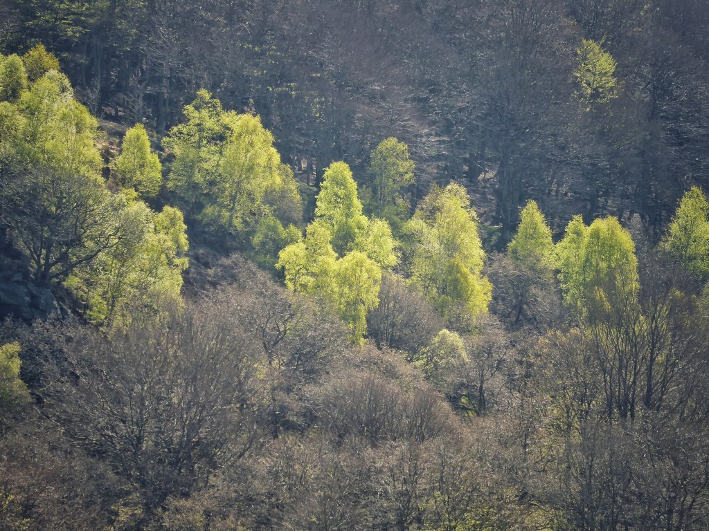 Beyond the birds, the landscape itself is beginning to change. Blackthorn blossom appears in the hedgerows, and bumblebees emerge on warm days. Though the woods are still largely bare, some birch buds may already have burst by the end of March. Smaller trees such as hazel and elder may have leaves emerging, while larch has often shown its first green needles. Hornbeam and rowan buds are swollen in readiness. The male catkins of goat willow – vivid little yellow lamps – are just starting to dim and fall. Wood sorrel and bilberry are flowering, and in some years in sheltered woods, a few very early bluebells may already have opened.